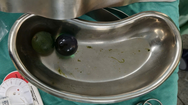 Tại đây, bệnh nhi được bác sĩ thăm khám, siêu âm bụng. Kết quả ghi nhận có một khối dạng nang dịch, đường kính khoảng 2-3cm ở trong ruột Q., nghi ngờ dị vật đường tiêu hóa gây tắc ruột. Các bác sĩ đã tiến hành mở ruột lấy dị vật và tái lập lưu thông đường tiêu hóa cho Q. Sau mổ, bênh nhi phục hồi tốt.