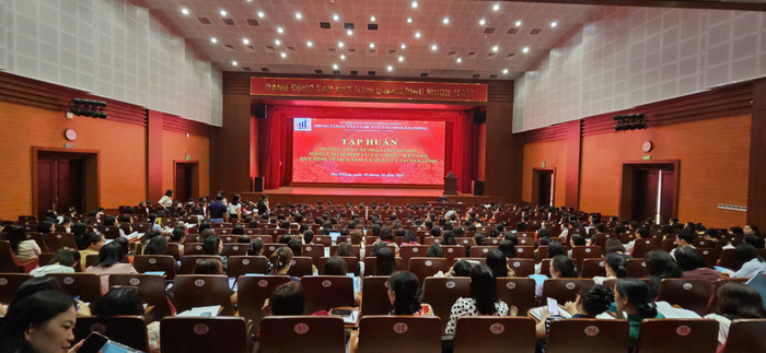 Lớp tập huấn hướng dẫn quy trình thủ tục mua sắm thực phẩm, cung cấp suất ăn học đường cho học sinh bán trú theo Nghị định số 214/2025/NĐ-CP. Ảnh: Trung tâm tư vấn và dịch vụ tài chính Hải Phòng
