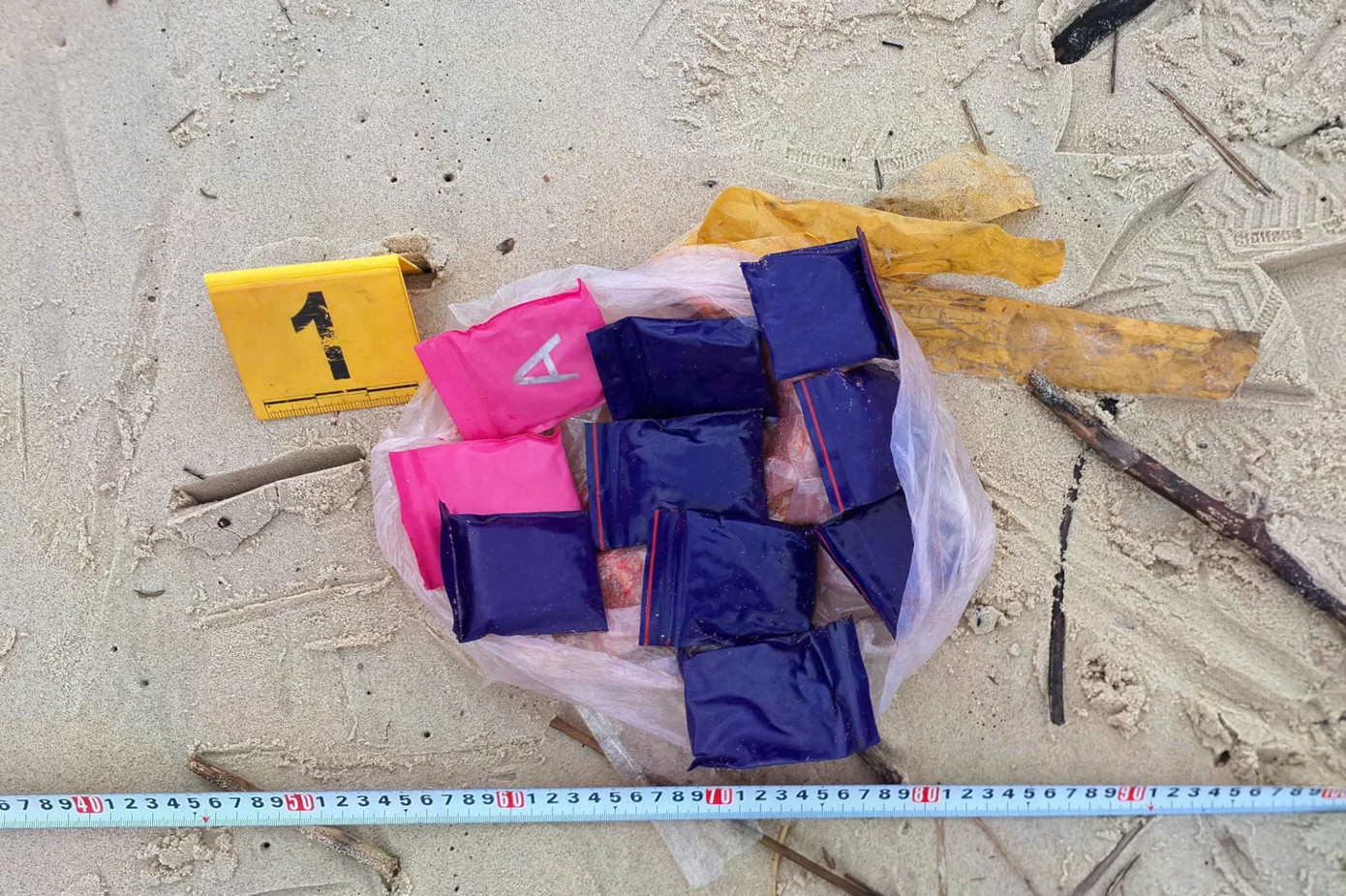 Khi lực lượng biên phòng có mặt kiểm tra, các túi này chứa nhiều viên nén màu hồng nghi là ma túy tổng hợp, nhưng do bị nước biển làm ướt nên các viên đã mềm nhũn, dính lại với nhau, không thể đếm chính xác số lượng. Ước tính tổng khối lượng số tang vật khoảng 300 g, gồm cả bao bì và cát biển lẫn vào.