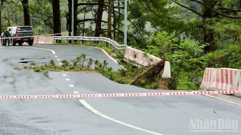 Tuyến đường đèo trên địa bàn tỉnh Lâm Đồng sạt lở nặng nề.
