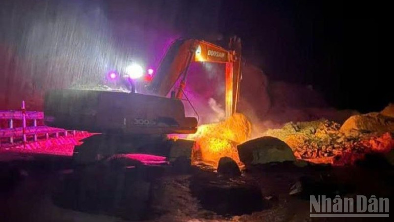 Các đơn vị khẩn trương khắc phục sạt lở, phấn đấu thông tuyến sớm nhất.
