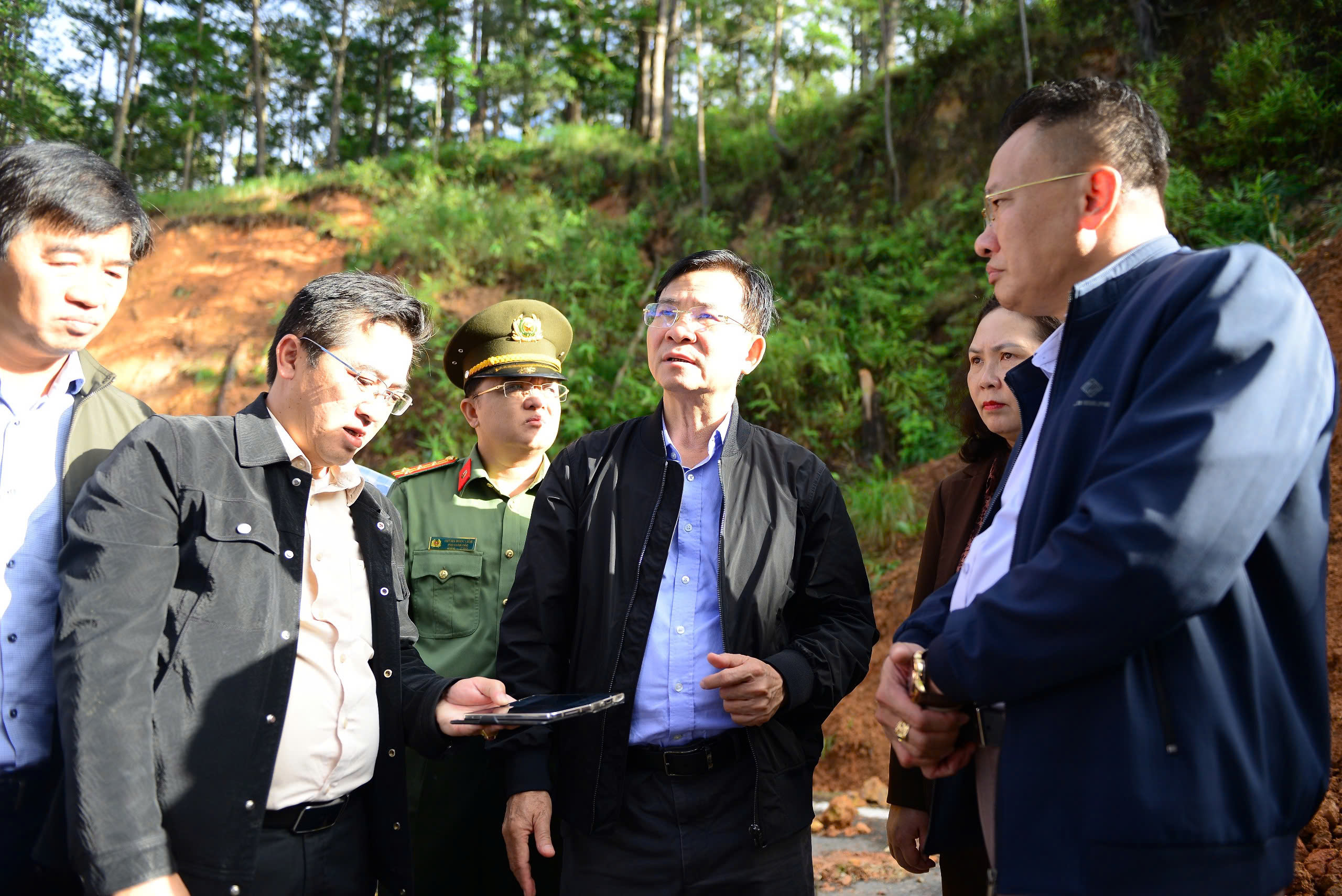 Sáng 31/10, Chủ tịch UBND tỉnh Lâm Đồng Hồ Văn Mười cùng đại diện các cơ quan liên quan khảo sát khu vực sạt lở trên đèo D’ran, phường Xuân Trường - Đà Lạt.