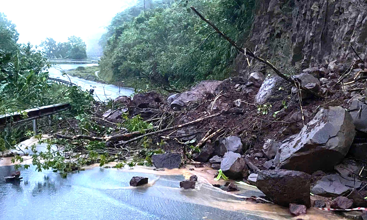 Tại Km9+400, Quốc lộ 15d thuộc xã La Lay tắc đường do sạt lở đất, đá.