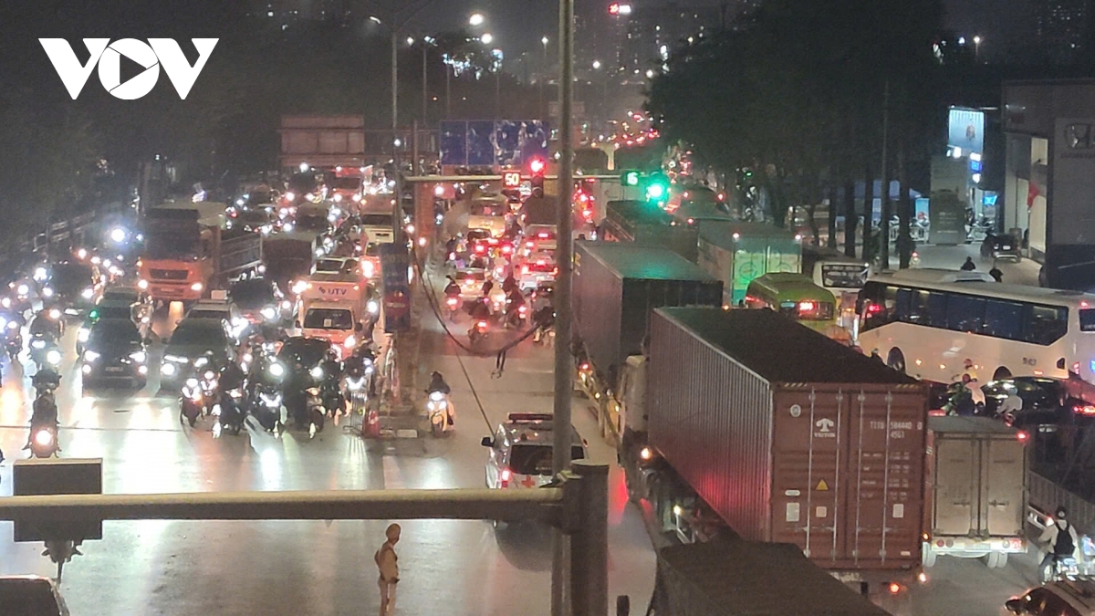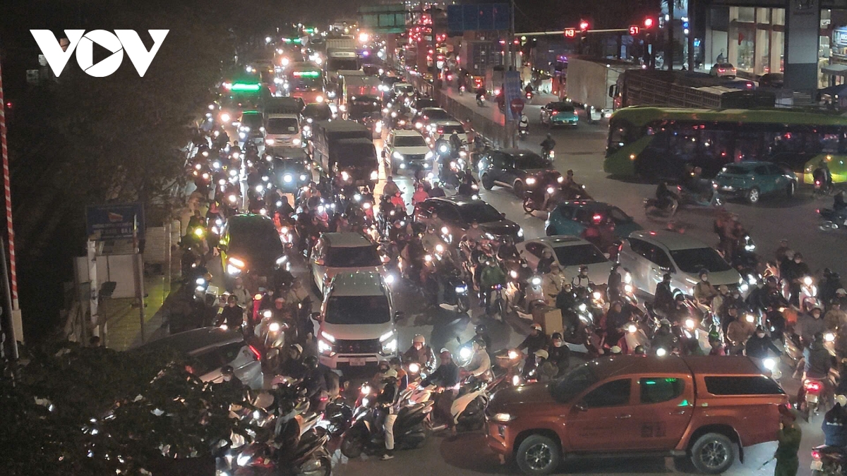 Trái ngược hoàn toàn với cảnh đìu hiu, vắng vẻ tại các bến xe, vào thời điểm sau giờ tan tầm, nhiều tuyến đường trên địa bàn Hà Nội rơi vào tình trạng ùn tắc kéo dài, khi dòng người và phương tiện đổ ra đường ngày một đông, hối hả rời Thủ đô về quê hoặc đi nghỉ Tết Dương lịch.