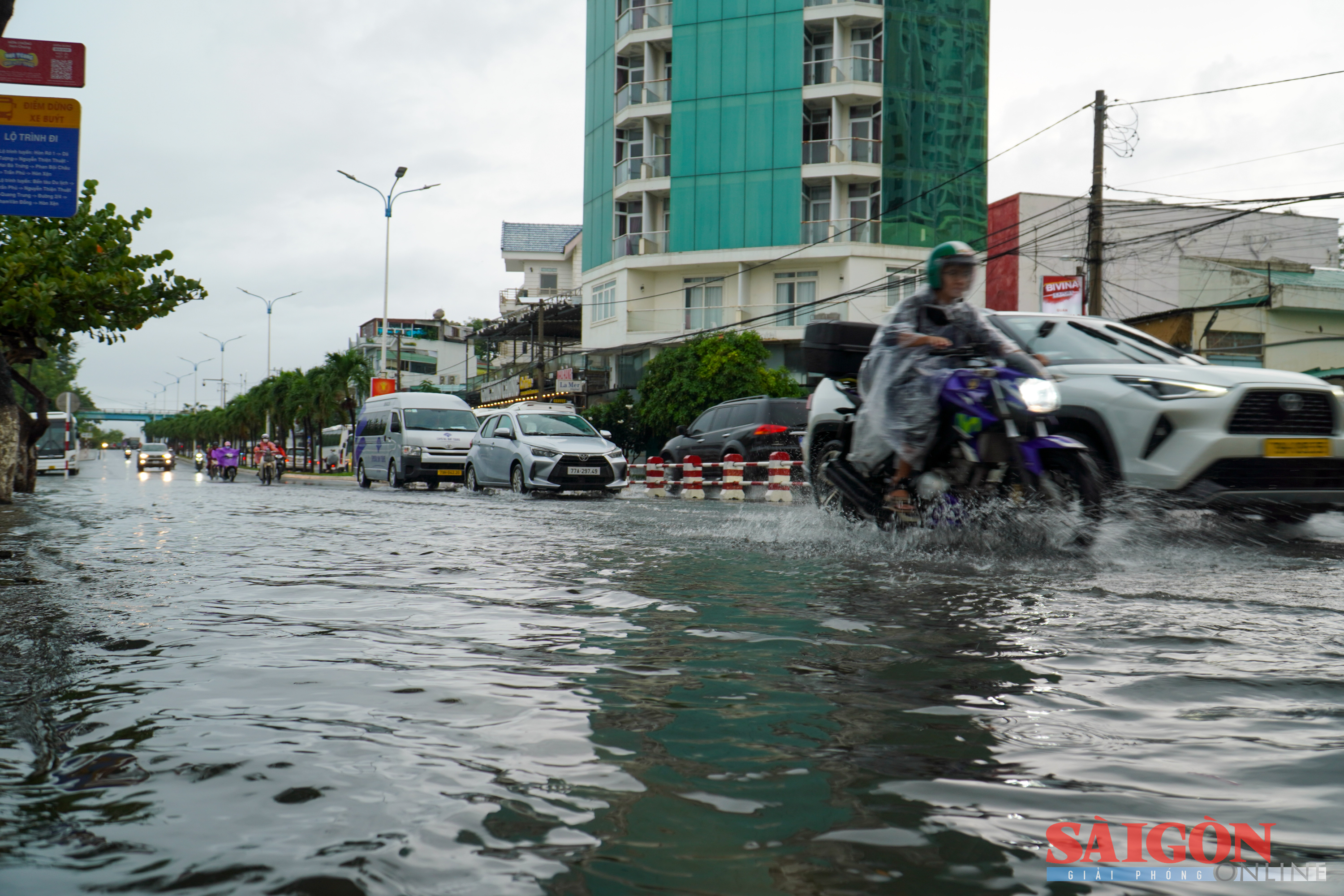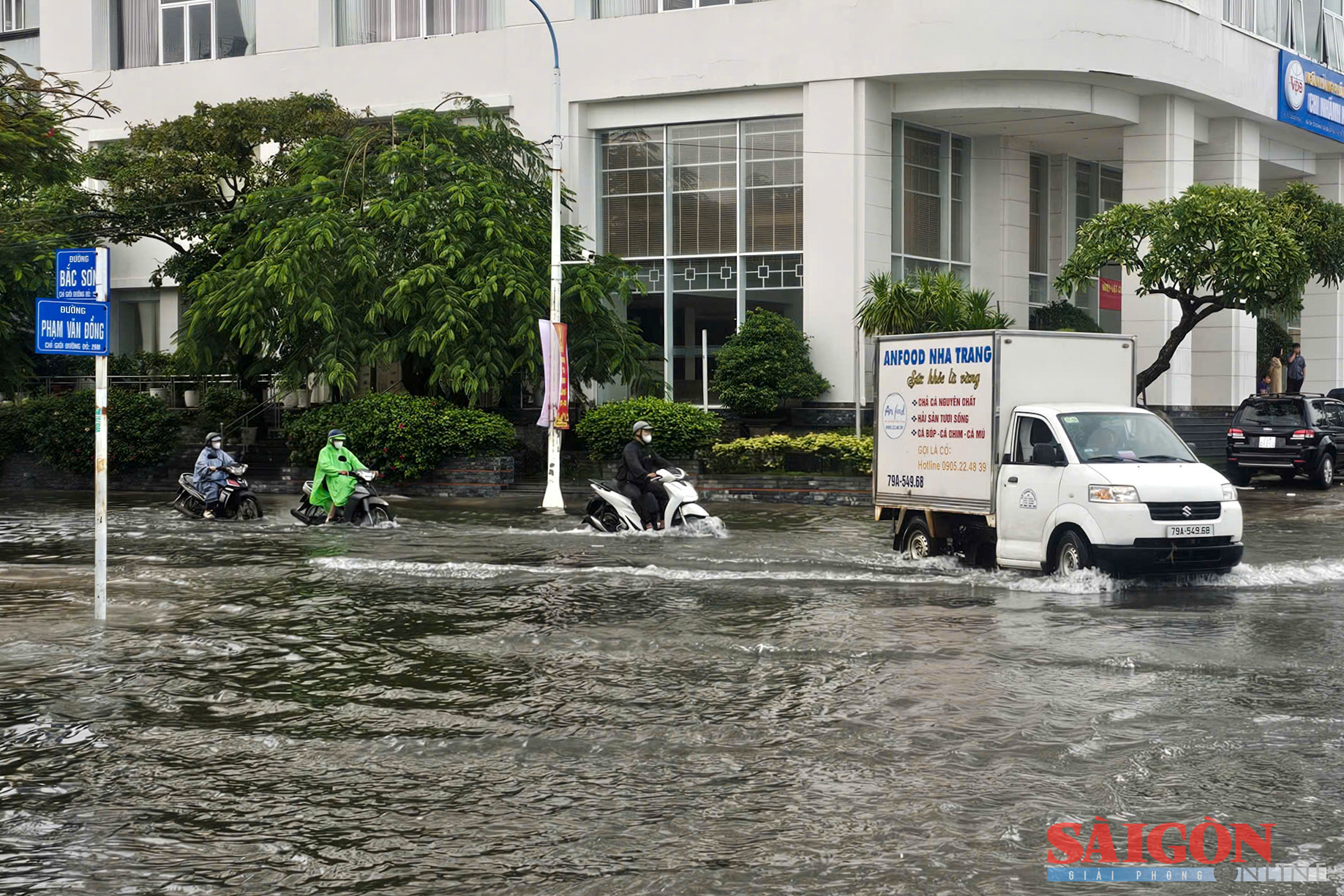 Theo ghi nhận của phóng viên, mưa lớn khiến hàng chục tuyến đường trong khu vực phường Bắc Nha Trang và Nha Trang bị ngập. Đặc biệt tại phường Bắc Nha Trang có nơi bị ngập sâu từ 20-40cm.