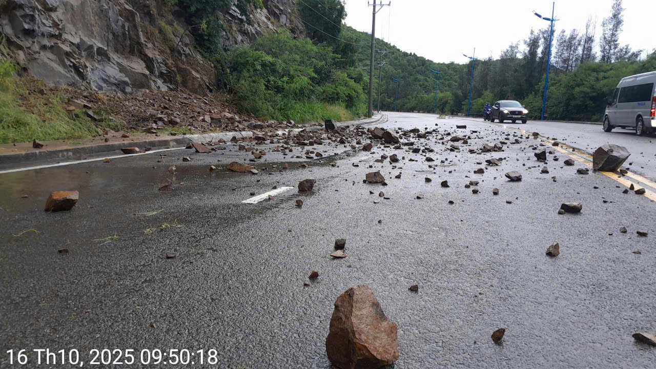 Cụ thể, sáng cùng ngày, tại Km5+650P, Km6+700-Km6+800, Km8+730P trên tuyến đường xuất hiện tình trạng sạt lở đất đá. Cơ quan chức năng đã bố trí rào chắn cảnh báo; khẩn trương hốt dọn.