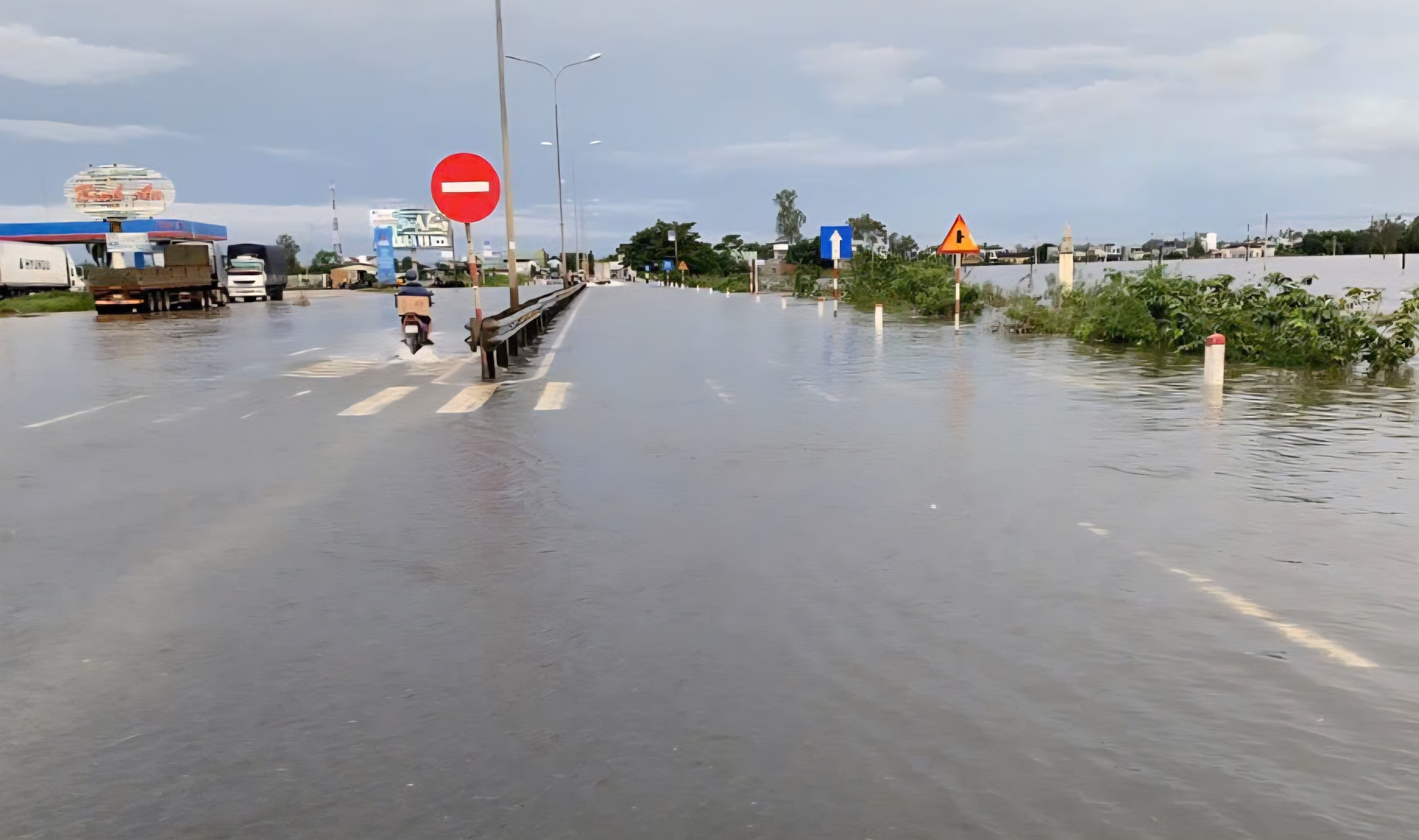 Hiện, đơn vị quản lý tuyến đã đặt cảnh báo tại các đoạn ngập.