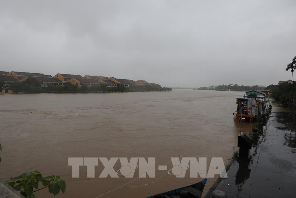 Nước từ thượng nguồn đổ về khiến mực nước sông Hoài chảy qua Hội An dâng cao. Ảnh: Anh Dũng – TTXVN