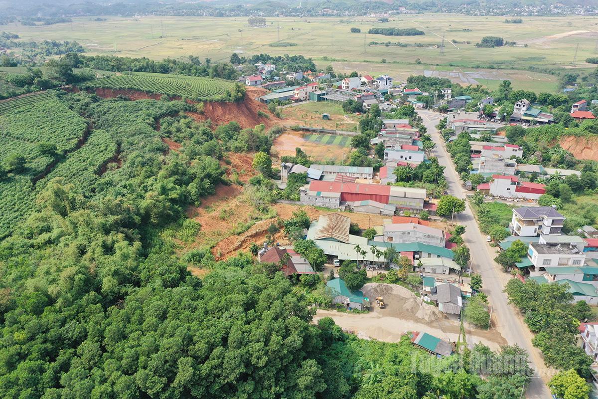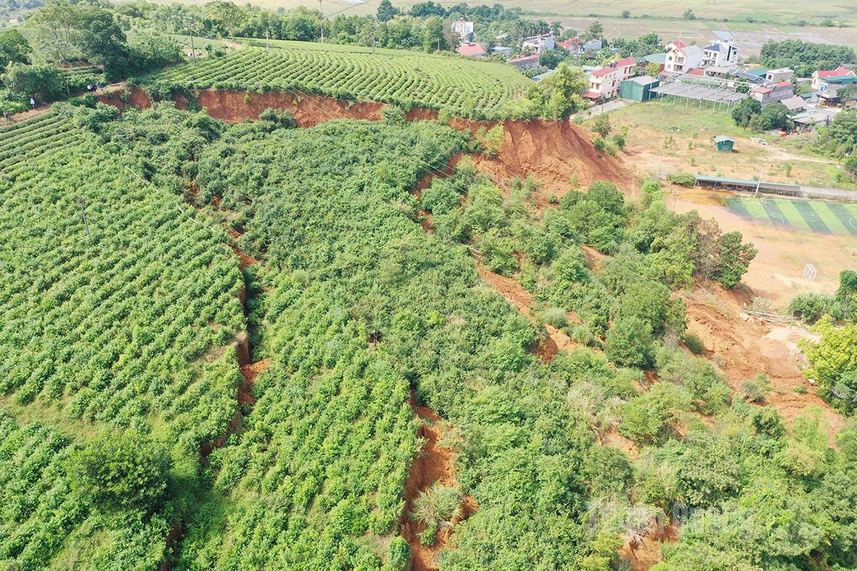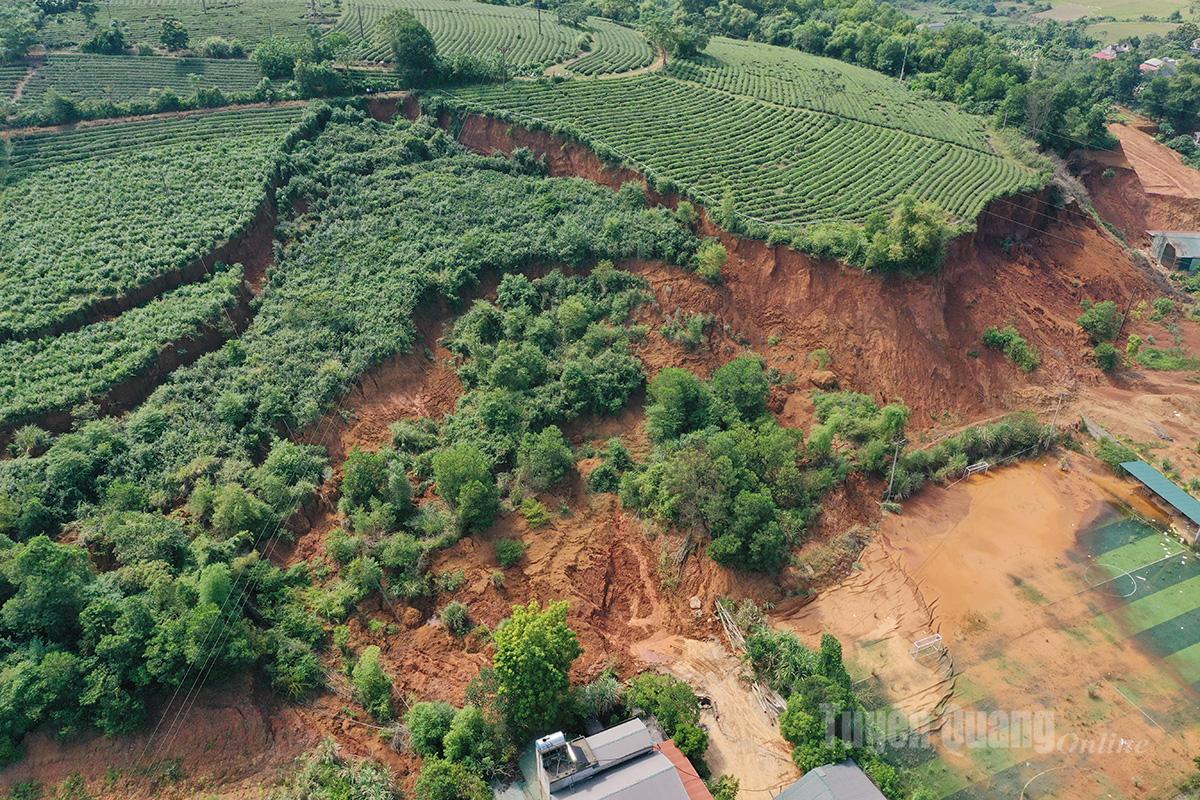 Toàn cảnh khu vực đồi Vi-ba với các vết nứt lớn, tiếp giáp với khu dân cư.