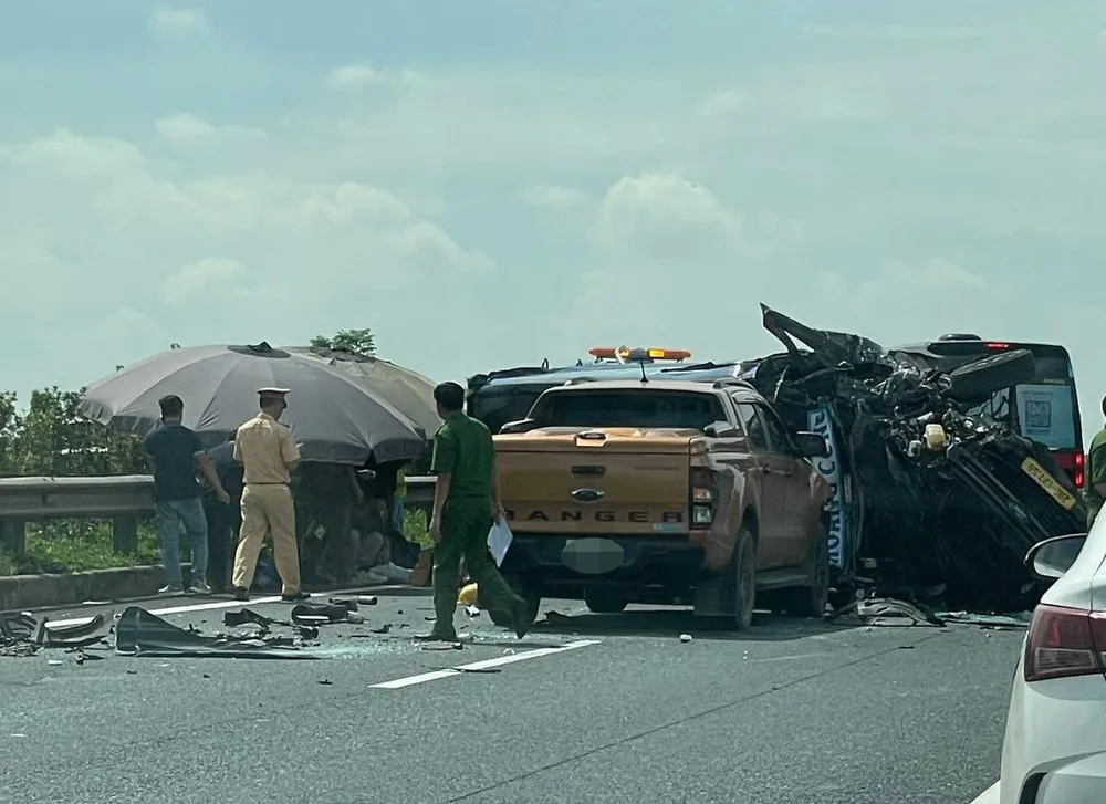 Vụ tai nạn liên hoàn giữa 5 ô tô trên cao tốc Pháp Vân - Cao Bồ - Mai Sơn - Quốc lộ 45. Ảnh: CTV