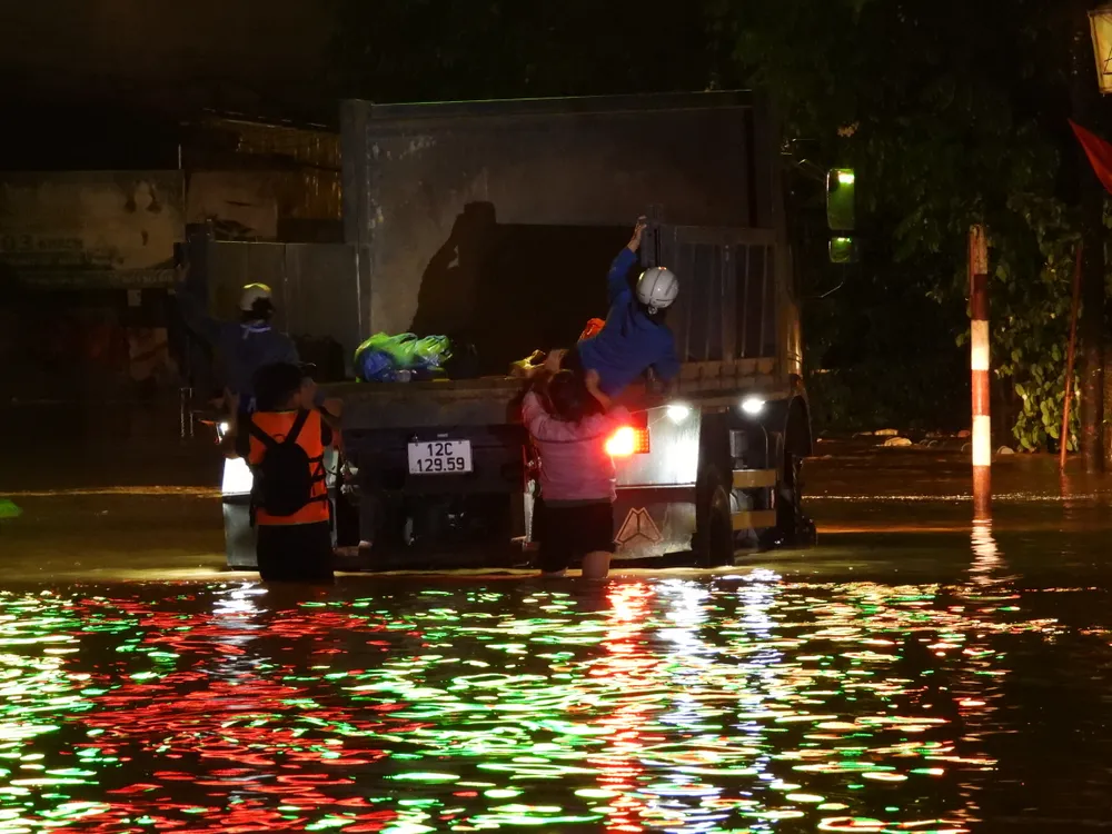 Tối 7-10, lực lượng chức năng Lạng Sơn vẫn đang nỗ lực để đưa người dân đến nơi an toàn. Ảnh: BẮC NINH