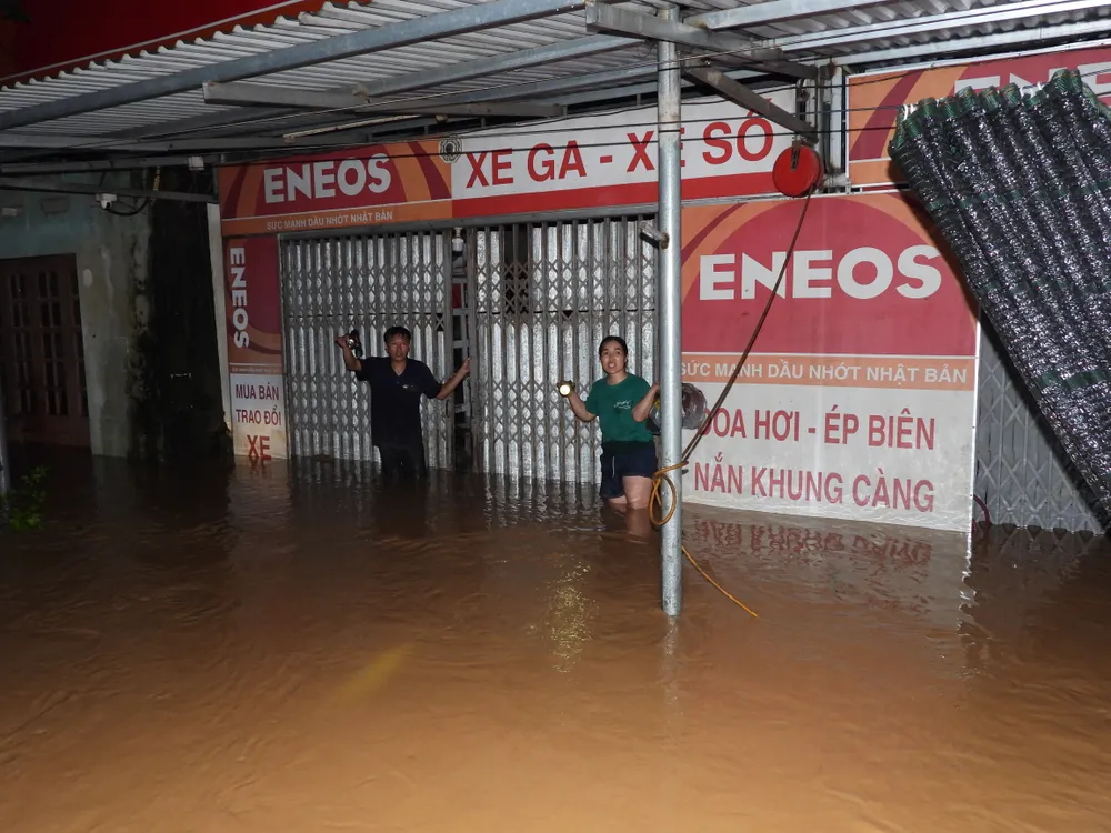 Gần 11 giờ đêm, ngày 7-10, mực nước sông Trung chảy qua các xã Hữu Lũng, Tuấn Sơn, Yên Bình, Thiện Tân, Vân Nham vẫn đang lên, vượt báo động 3 khoảng 4m.