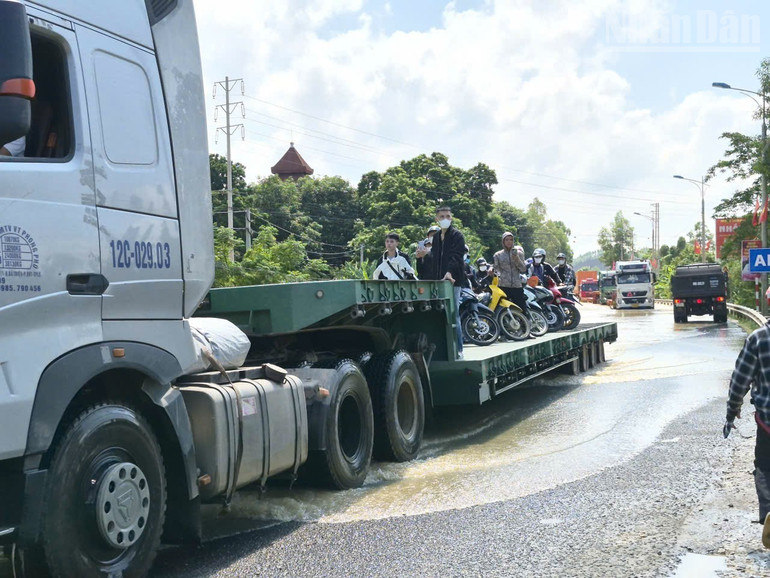Đáng chú ý, đã có nhiều tài xế xe đầu kéo sẵn sàng giúp đỡ người dân vượt qua các điểm úng ngập. Hình ảnh những chiếc xe đầu kéo chở hơn chục chiếc xe máy của bà con nhân dân qua vùng nước sâu đã thu hút sự chú ý của nhiều người.