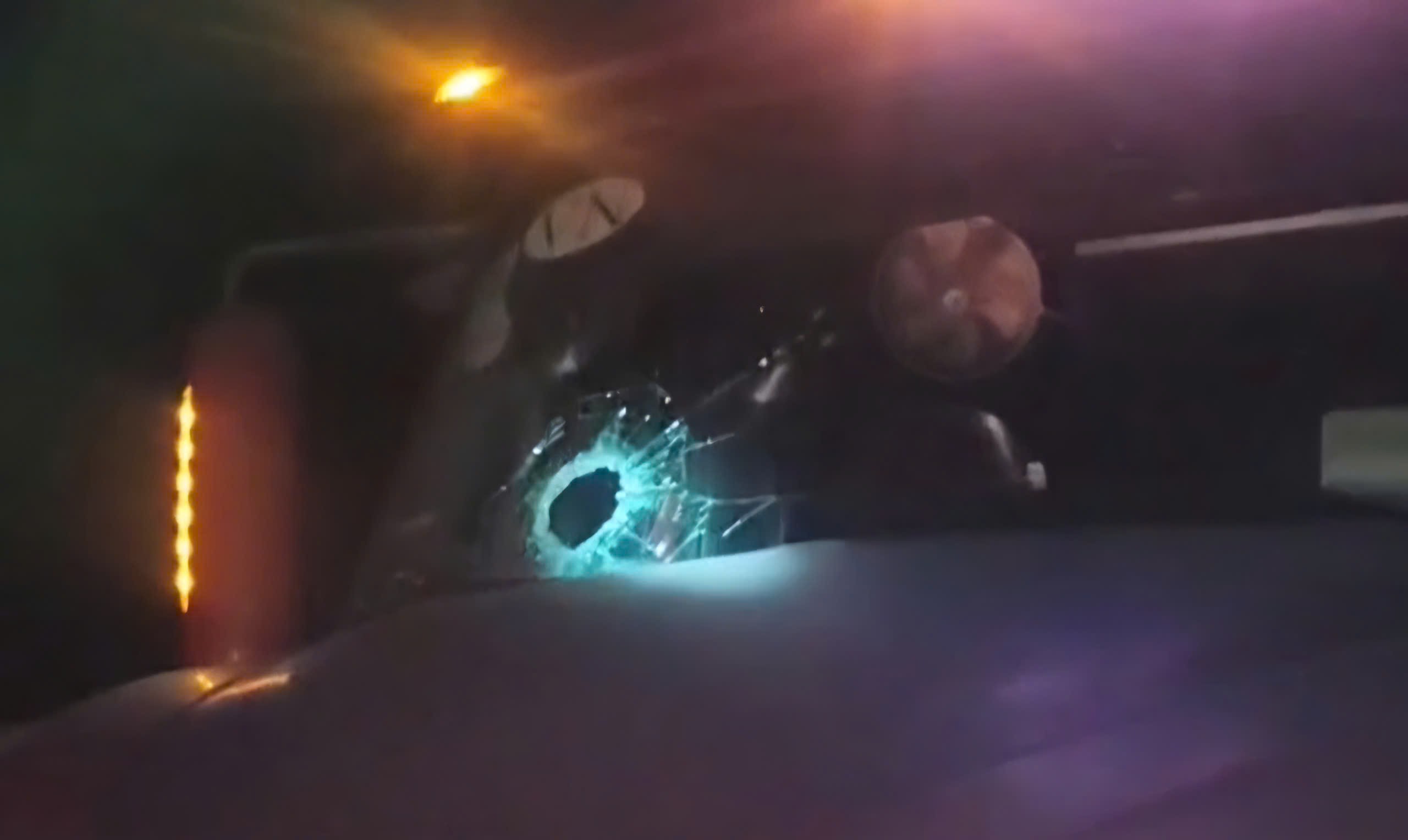 Một xe ô tô đầu kéo bị ném đá vỡ kính trên cao tốc.