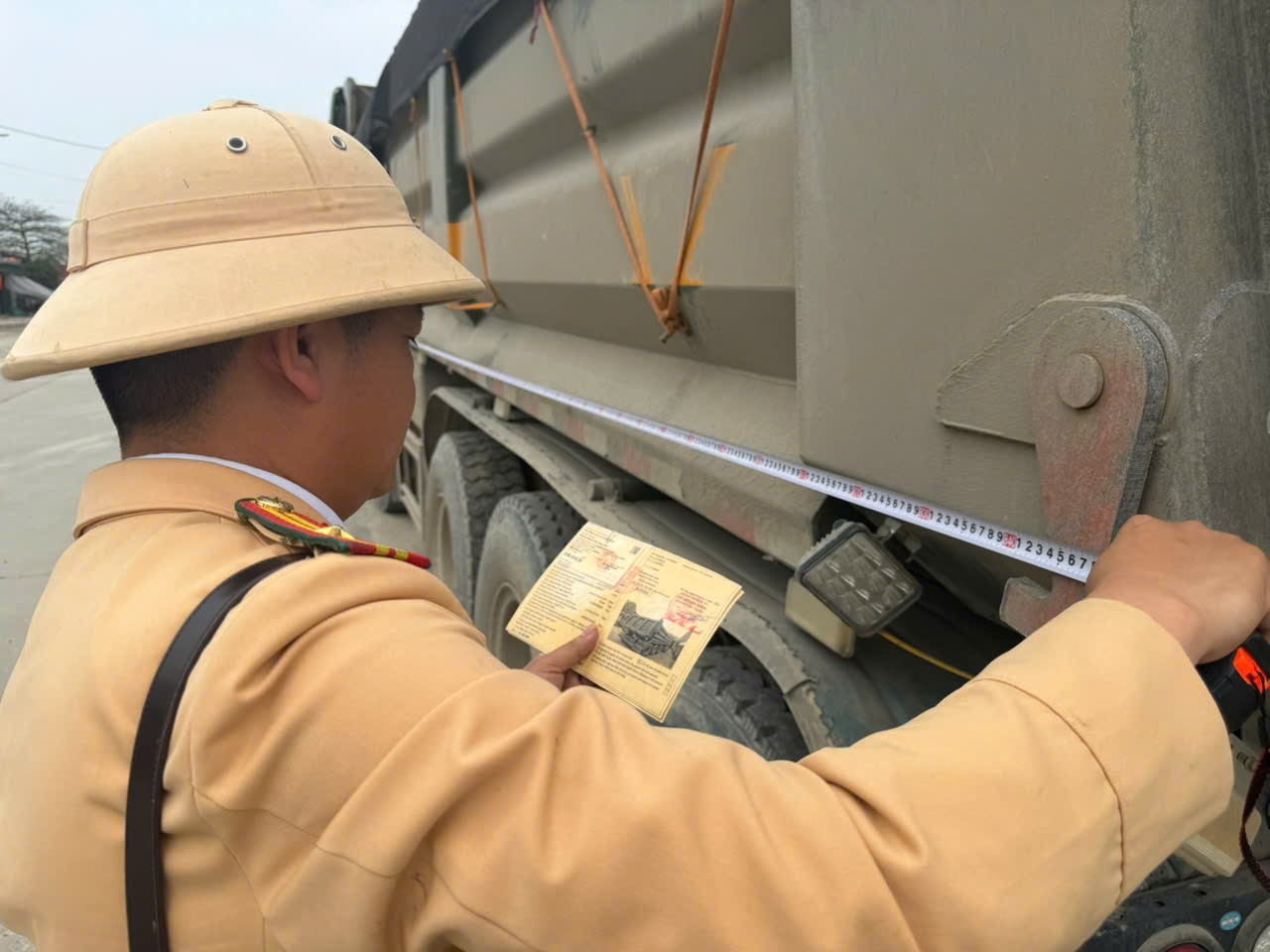 Đội CSGT đường bộ số 5 xử lý đối với nhiều chủ phương tiện về hành vi "Đưa ô tô tải có kích thước thùng xe không đúng với thông số kỹ thuật được ghi trong giấy chứng nhận ATKT và BVMT tham gia giao thông".
