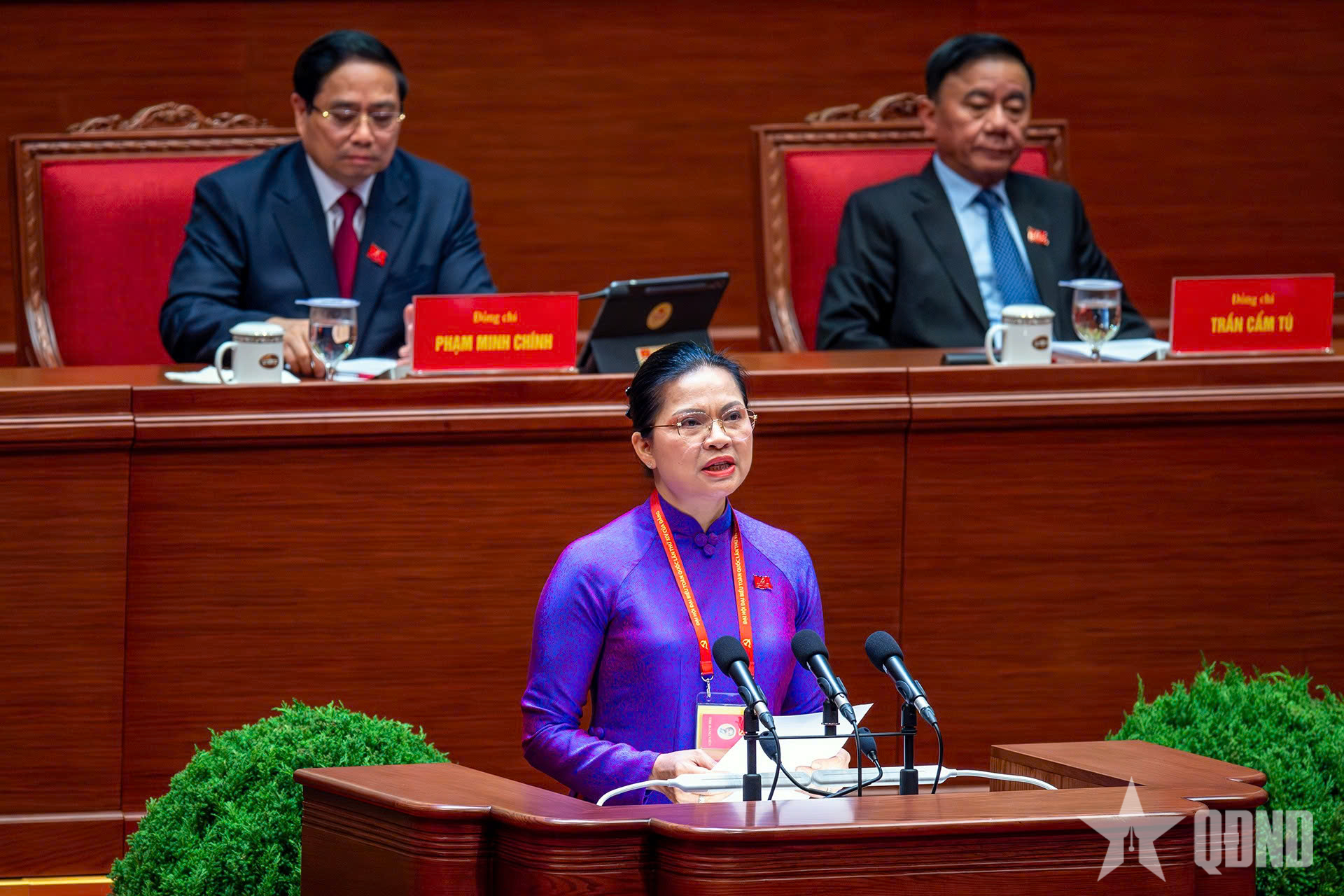 Đồng chí Phạm Thị Thanh Trà, Ủy viên Trung ương Đảng, Phó thủ tướng Chính phủ tham luận tại Đại hội.