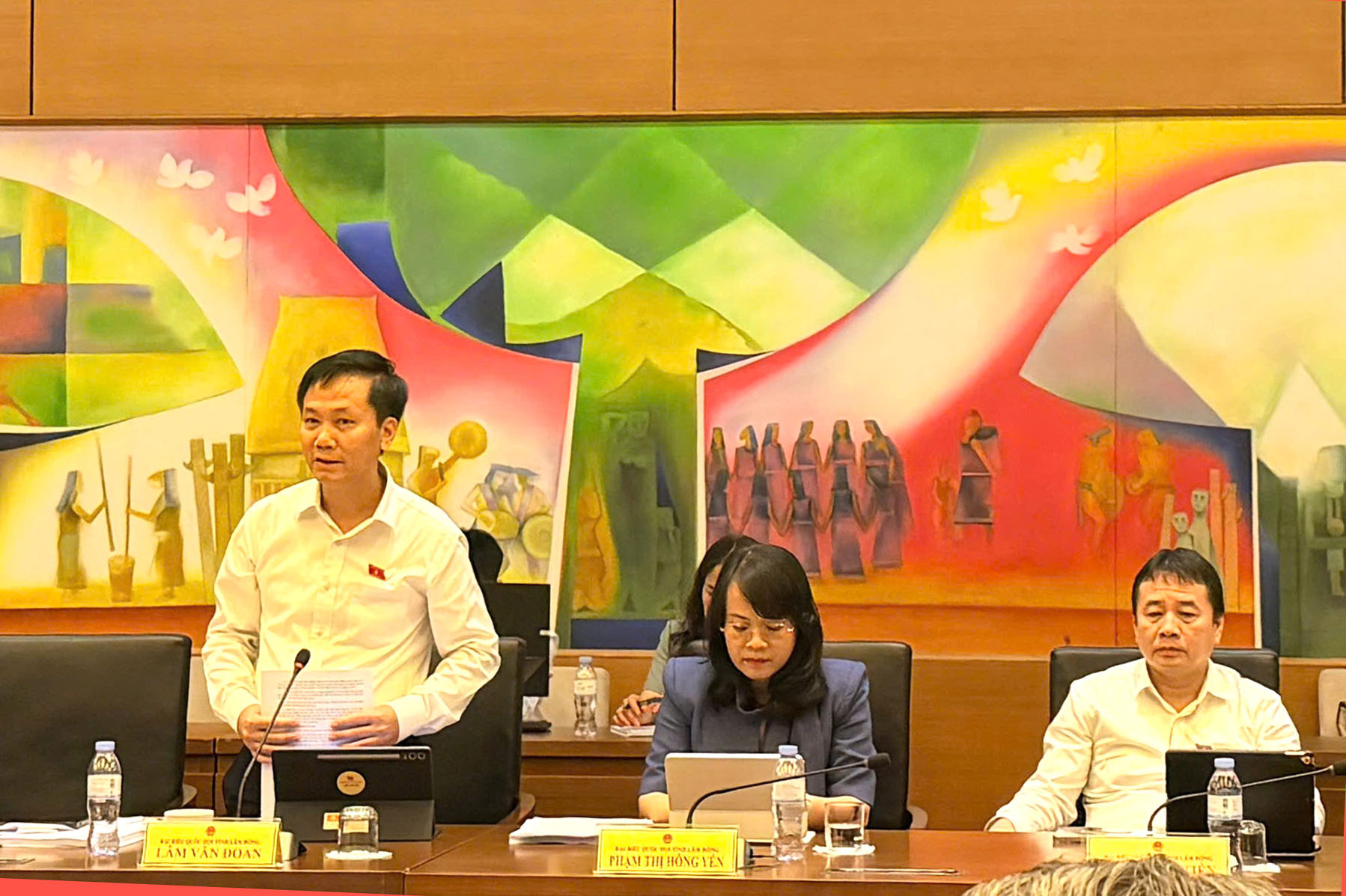 Phó Chủ nhiệm Ủy ban Văn hóa và Xã hội của Quốc hội Lâm Văn Đoan, Đoàn ĐBQH Lâm Đồng phát biểu ý kiến. Ảnh Kiều Trinh
