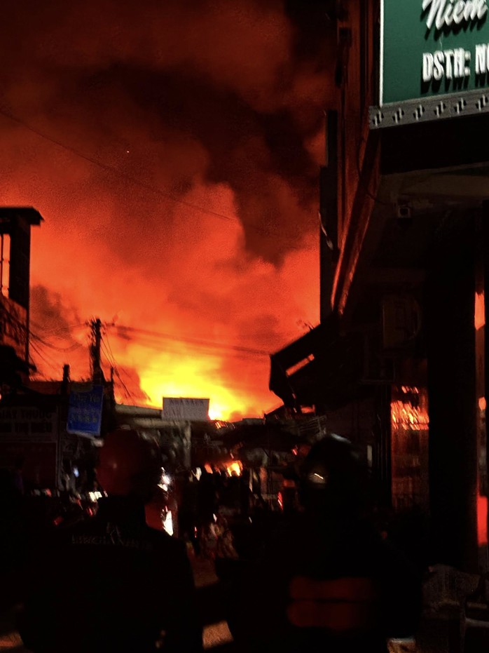 "Tiểu thương bán tạp hóa gần nhà tôi khi nghe tin chợ cháy gần như đi không nổi, chỉ biết hô hoán hàng xóm để kéo hàng ra ngoài, ai cũng hoảng loạn" - chị T., người dân địa phương, chia sẻ.