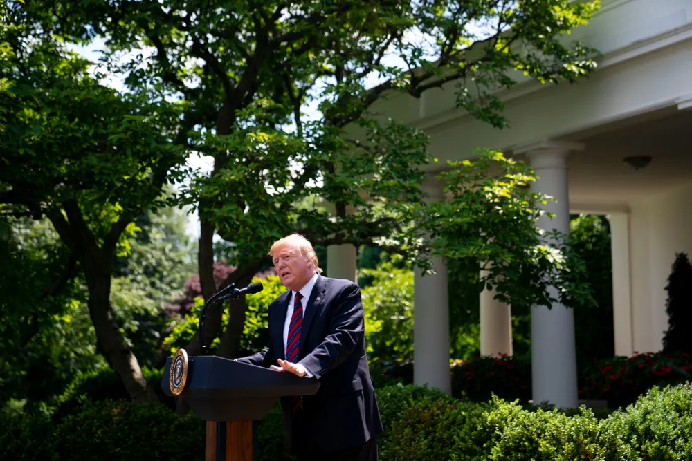 Tổng thống Mỹ Donald Trump phát biểu tại Vườn Hồng, Nhà Trắng. Ảnh: THE NEW YORK TIMES