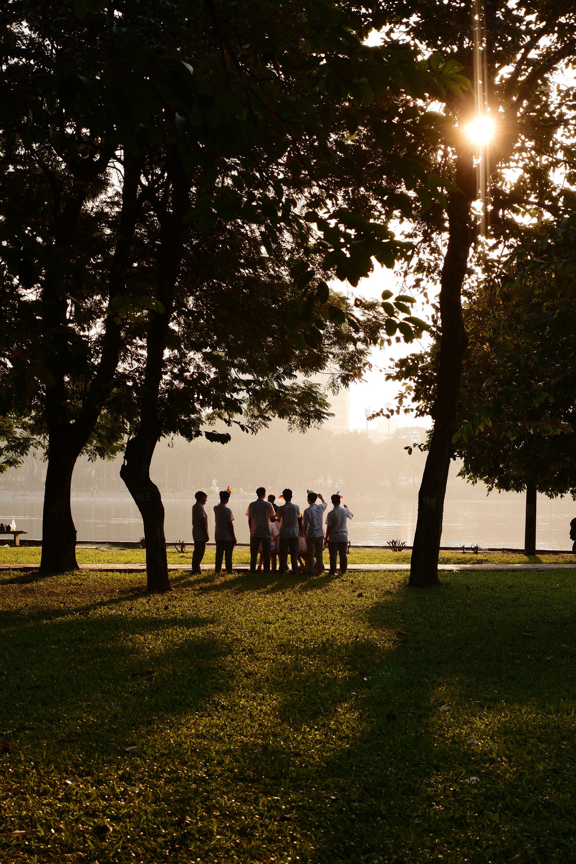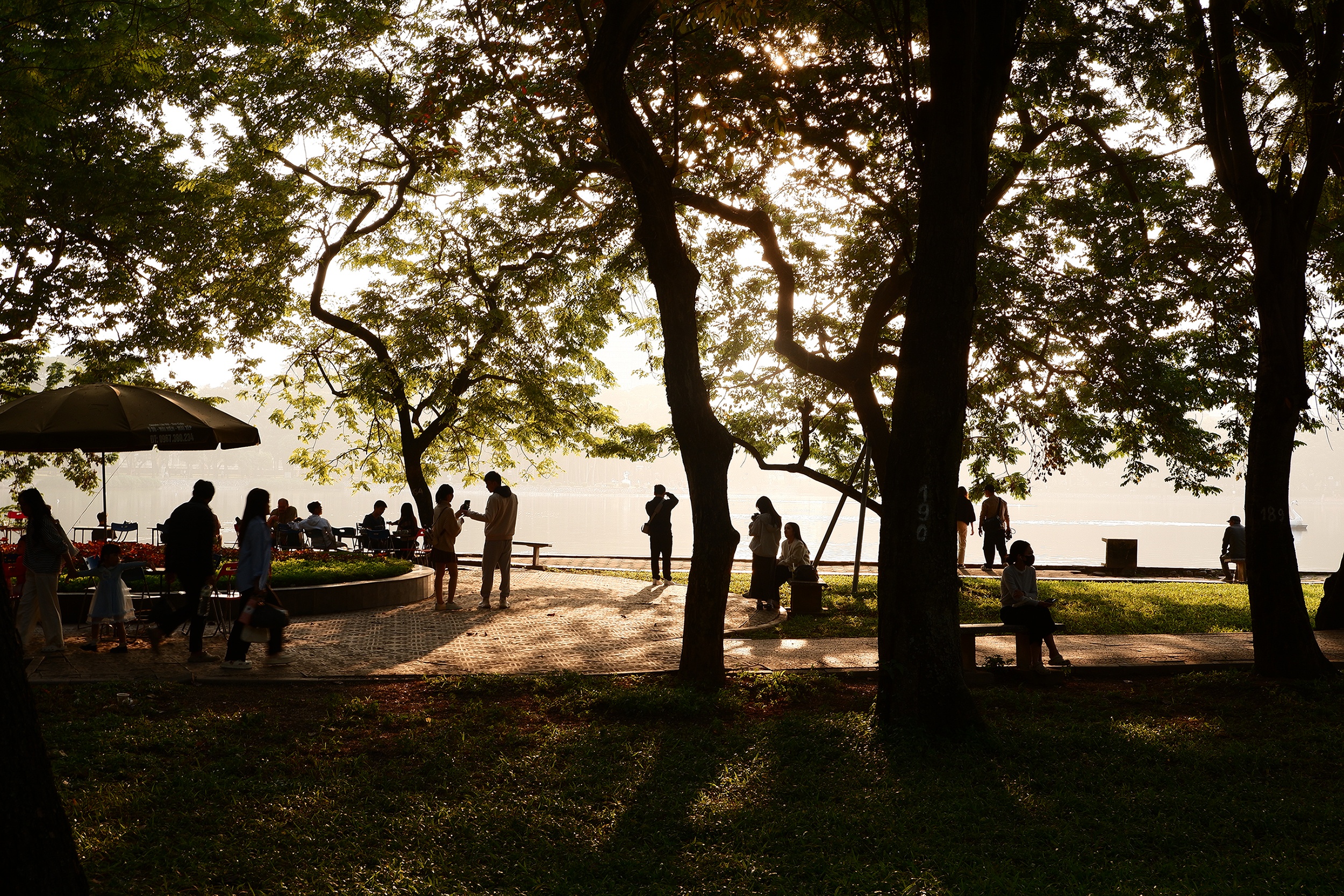 Trung bước vào công viên từ cổng Trần Nhân Tông, ấn tượng đầu tiên là những tán cây lớn đổ bóng xuống bãi cỏ, xen giữa vài công trình quen thuộc như nhà gương vẫn giữ nguyên hình ảnh anh từng nhớ từ hồi bé. "Khá tĩnh lặng, có gì đó vừa hoài niệm vừa đúng kỳ vọng của tôi về một công viên", anh nói. Kỷ niệm gần nhất của Trung với công viên Thống Nhất trước mùa thu năm nay là mùa hè 2013, khi anh tham gia một sự kiện chạy bộ. Việc công viên dỡ rào, mở rộng cho người dân đi dạo khiến cảm nhận của anh lần này khác hẳn. Đi bộ giữa không gian cây xanh, nắng nhẹ và gió mát đầu đông giúp tâm trạng anh thoải mái hơn. Trong bối cảnh Hà Nội không có quá nhiều công viên, công viên Thống Nhất theo Trung đã đáp ứng được những kỳ vọng cơ bản: không gian mở, hồ rộng, ánh nắng xuyên qua tán cây và cảnh quan tự nhiên không phụ thuộc vào các vườn hoa thiết kế. Anh cho rằng lý do những không gian đời thường như công viên ngày càng được yêu thích là bởi người trẻ tìm đến để tận hưởng một ngày đẹp trời theo cách của riêng mình: tập thể thao, chụp ảnh, picnic hay đơn giản chỉ là nằm dài trên cỏ.