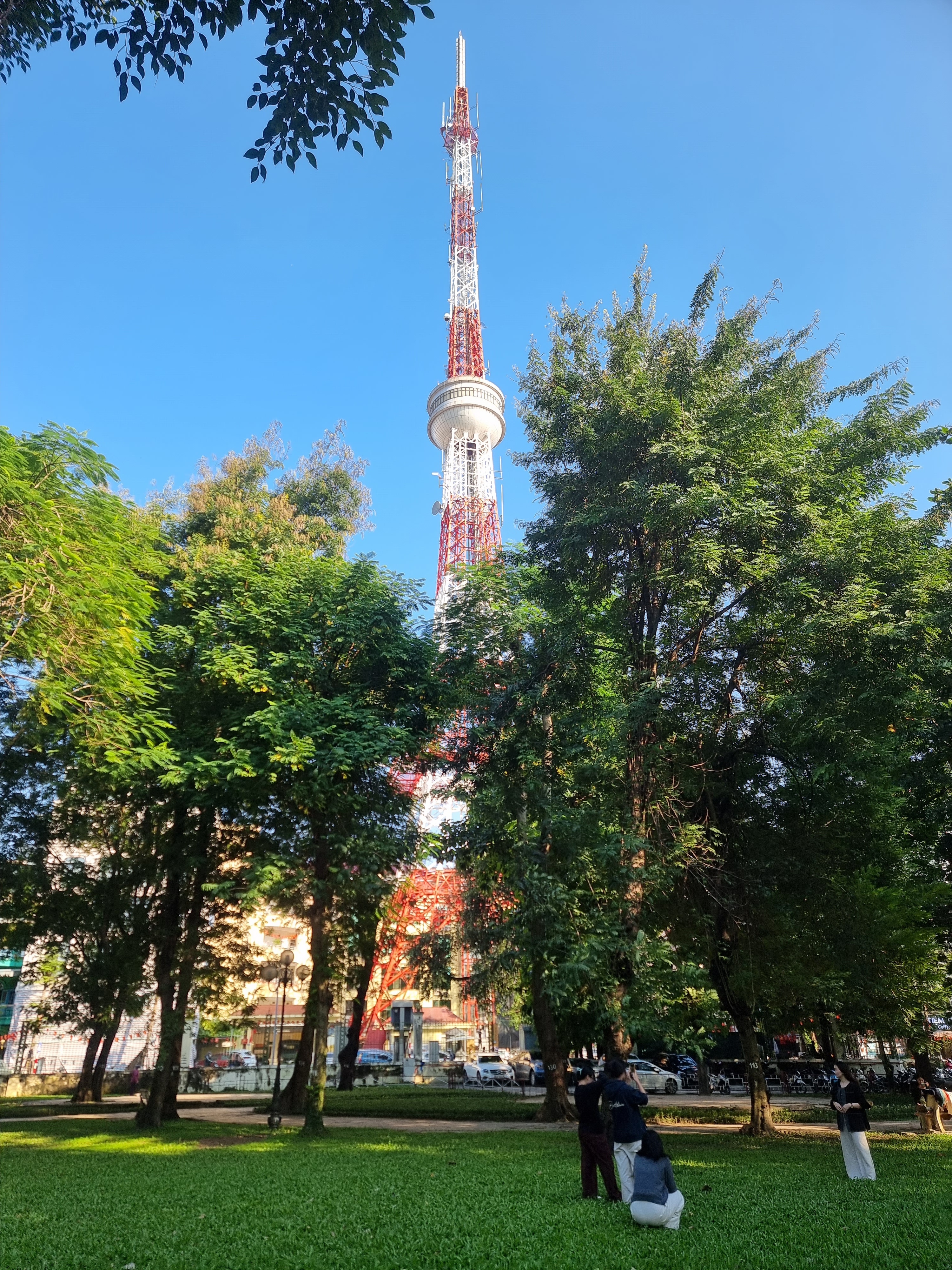Nguyễn Hoàng Trung, 30 tuổi, sống tại Hà Nội và đang theo đuổi công việc vận động chống ô nhiễm ánh sáng. Chiều 20/11, anh quyết định "trốn việc một chút", cầm máy phim đến công viên Thống Nhất chụp ảnh. Đây chỉ là một trong vài lần hiếm hoi anh ghé lại thời gian gần đây. Điểm thu hút Trung nhiều nhất là tháp truyền hình trên đường Nguyễn Đình Chiểu, công trình được giới trẻ ví như "tháp Tokyo" phiên bản Hà Nội khi nhìn từ phía công viên. Anh cho biết đây là chi tiết mình luôn chú ý, kể cả khi nhìn từ xa vài kilomet. "Tòa tháp khung thép đỏ trắng nổi bật trong những ngày trời xanh, rồi khi chụp cận cảnh, nó lại được đóng khung bởi tán cây, khiến mình nhớ đến những bức ảnh Instagram về tháp Tokyo và trời thu Nhật từng trải nghiệm", anh nói với Tri Thức - Znews. Dưới bài đăng của Trung, nhiều người chia sẻ lại ảnh họ chụp tòa tháp, nói đùa "khỏi cần xin visa Nhật Bản". Lượng tương tác bất ngờ với hơn 6.000 lượt thích khiến anh khá hào hứng. Anh nhận thấy những ngày sau, nhiều bài viết về công viên Thống Nhất xuất hiện thêm hình ảnh tòa tháp này.