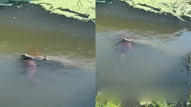 Một người đàn ông tên Zack Spurlock đã quay lại đoạn video sau khi được bạn mình kể rằng họ nhìn thấy một con cá sấu bơi trong kênh với một con chó trong miệng. Zack đã đăng đoạn video lên tài khoản Instagram của mình và thu hút sự chú ý rộng rãi.