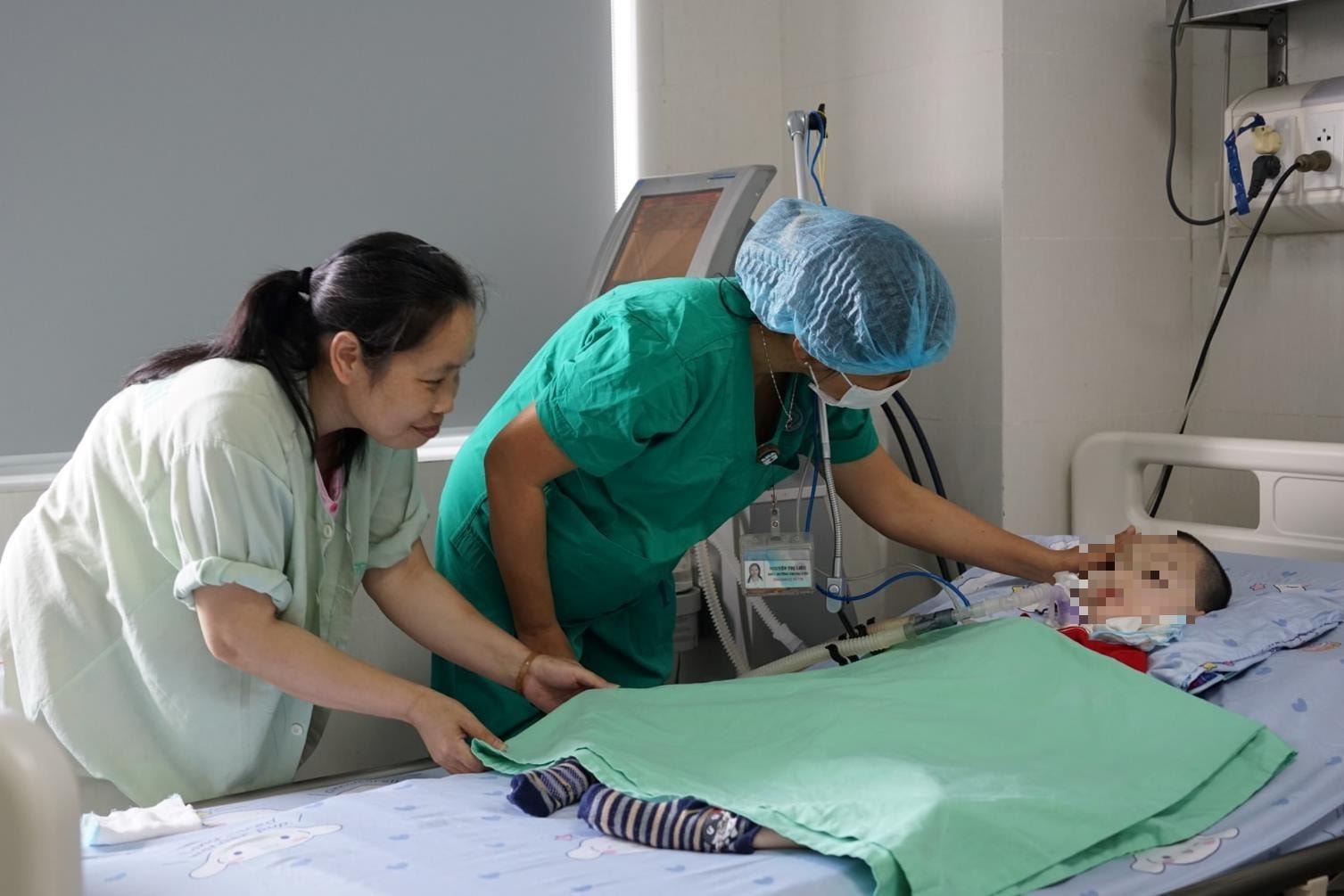 Sự đồng hành của bác sĩ, điều dưỡng và Phòng Công tác xã hội là điểm tựa giúp mẹ con chị Võ Thị Hiền vượt qua khó khăn. Ảnh: TRÂM ANH