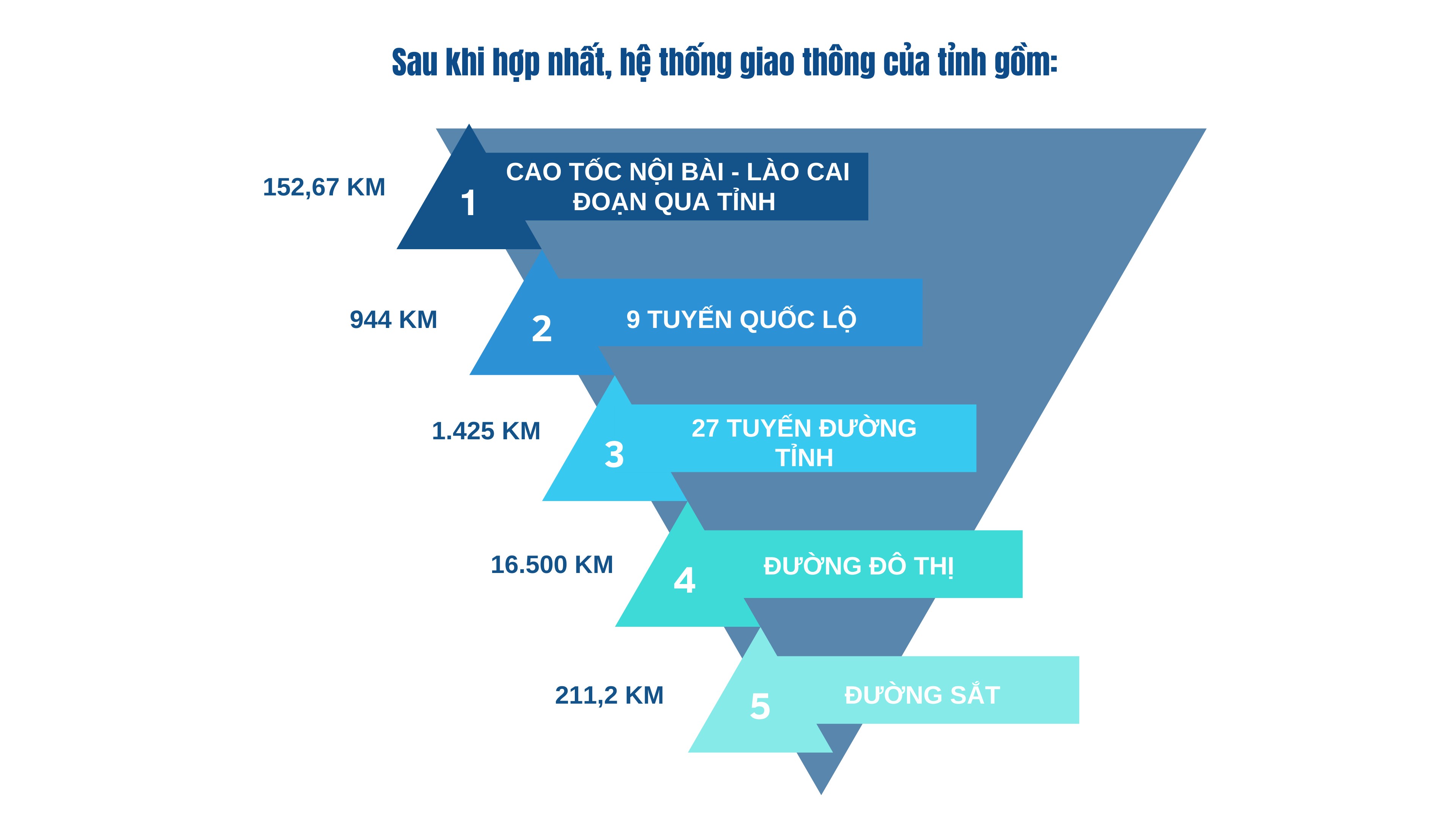 Sau khi hợp nhất, hệ thống giao thông của tỉnh gồm tuyến cao tốc Nội Bài - Lào Cai đoạn qua địa bàn dài 152,67 km; 9 tuyến quốc lộ với tổng chiều dài 944 km; 27 tuyến đường tỉnh dài 1.425 km cùng hơn 16.500 km đường đô thị, đường giao thông nông thôn, đường thôn bản, đường chuyên dùng, đường tuần tra biên giới..., trong đó gần 90% đã được kiên cố hóa.