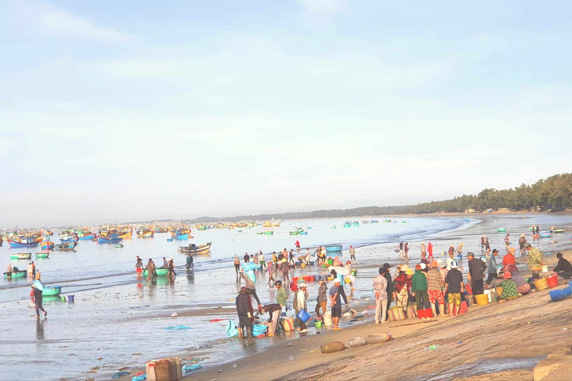Sau những chuyến biển xuất hành đầu năm, ghe thuyền làng chài trở lại nhịp sống thường nhật. Những thúng chai chở sọt cá, rổ mực tươi nặng trĩu vào bờ, lấp lánh dưới nắng sớm. Thương lái đợi sẵn cân cá, chở đi, tạo nên không khí rộn ràng với tiếng chào hỏi, mặc cả thân tình của người miền biển.