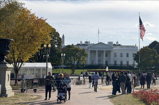 Du khách thong thả dạo quanh Nhà Trắng ở thủ đô Washington D.C.