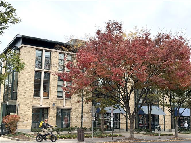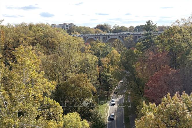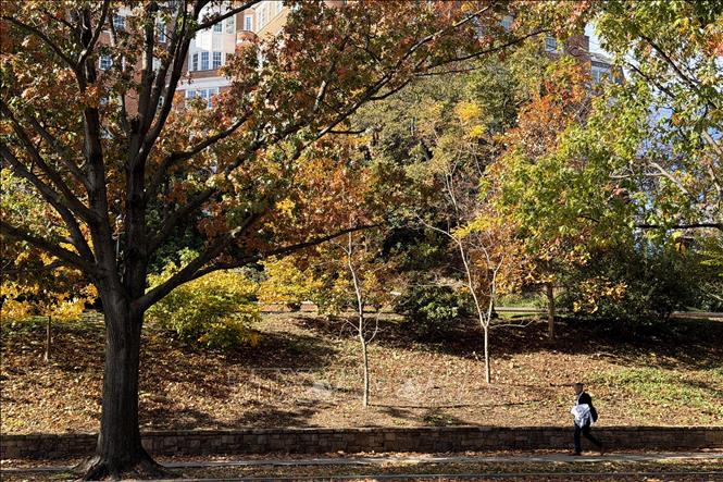 Giữa tiết trời se lạnh, màu lá đỏ rực phản chiếu dưới ánh nắng vàng, tạo nên bức tranh Thu rực rỡ của thủ đô nước Mỹ.