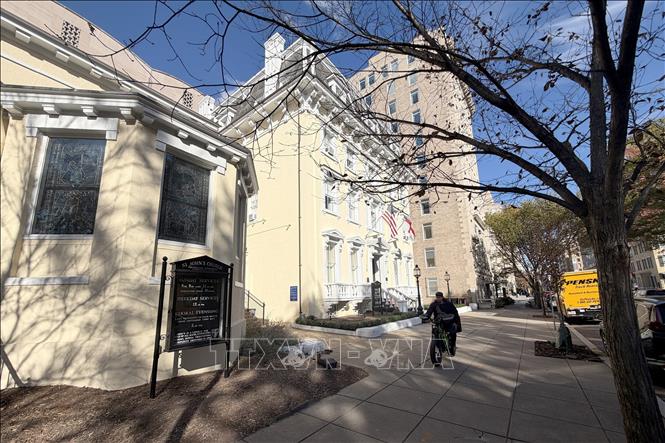 Giữa đường phố tĩnh lặng, Nhà thờ St. John’s nổi bật dưới cành cây trơ lá, điểm xuyết vẻ đẹp cổ kính của Washington D.C.