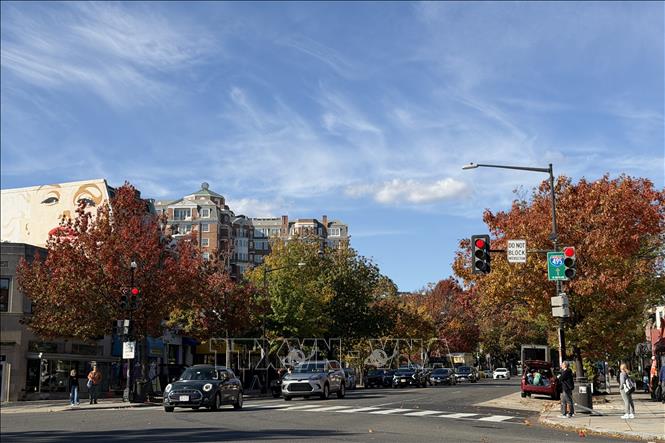 Cuối Thu ở trái tim chính trị của nước Mỹ, không còn cảnh hối hả, náo nhiệt thường thấy do chính phủ đóng cửa, nhường chỗ cho sự tĩnh lặng, chậm rãi và đầy thi vị. Trên mặt đường, lá rơi vương vãi, những tán cây trơ cành tạo nên khung cảnh thanh lịch, phản chiếu nhịp sống của thủ đô trong những ngày khác thường này.