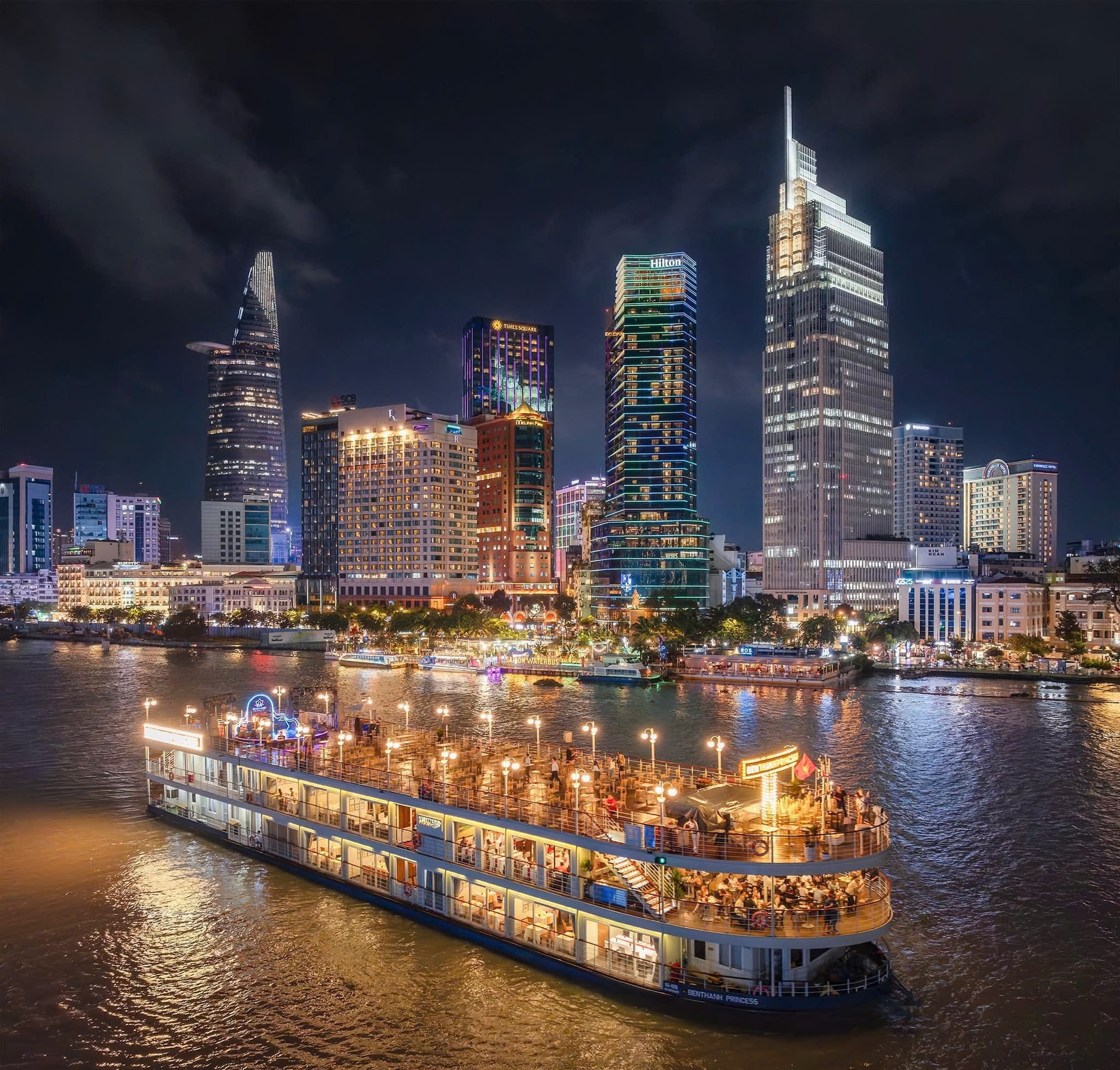Du thuyền đưa khách du lịch thưởng ngoạn sông Sài Gòn, vừa ngắm cảnh đẹp vừa dùng món ngon. Ảnh: Văn Trung