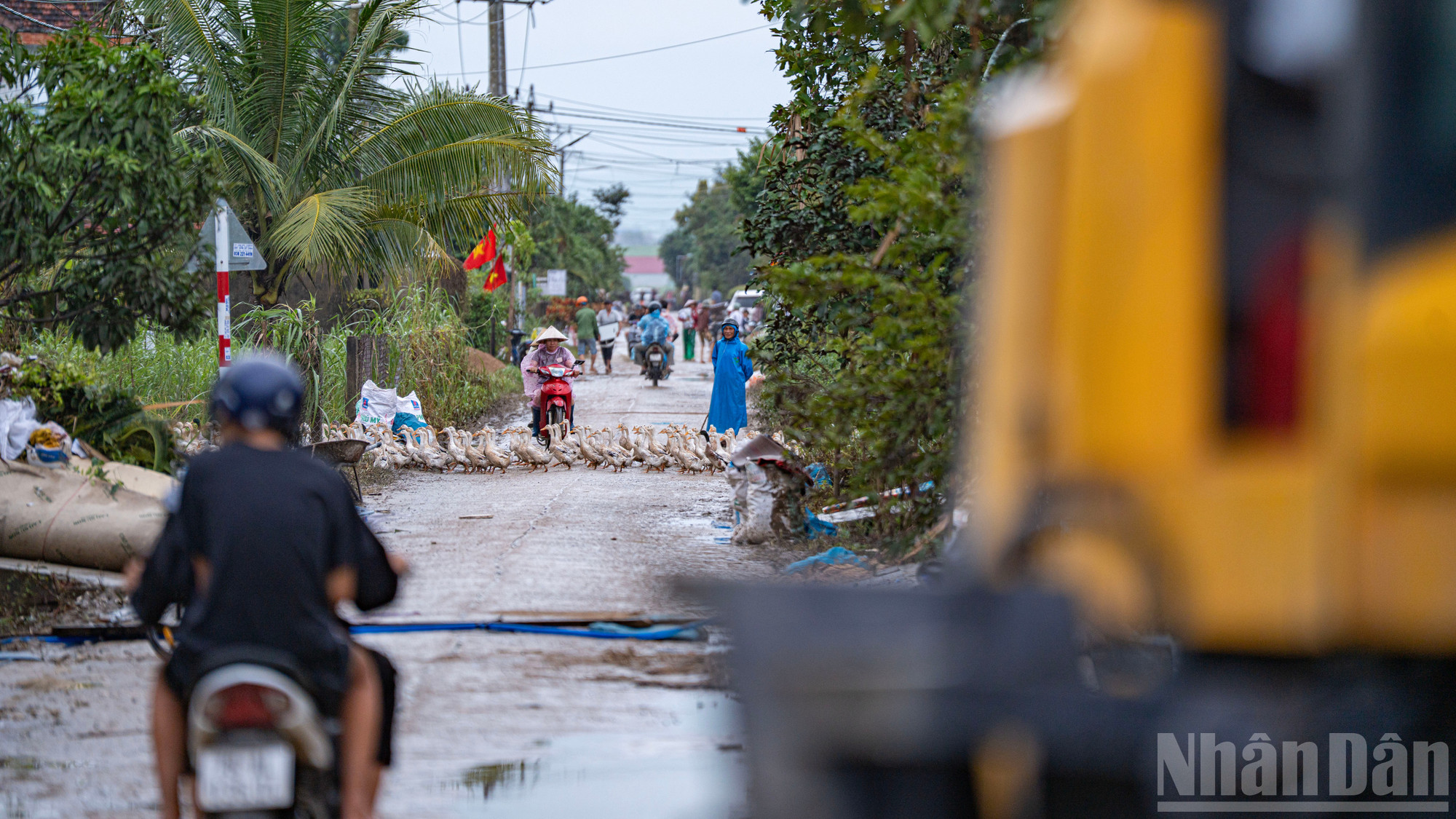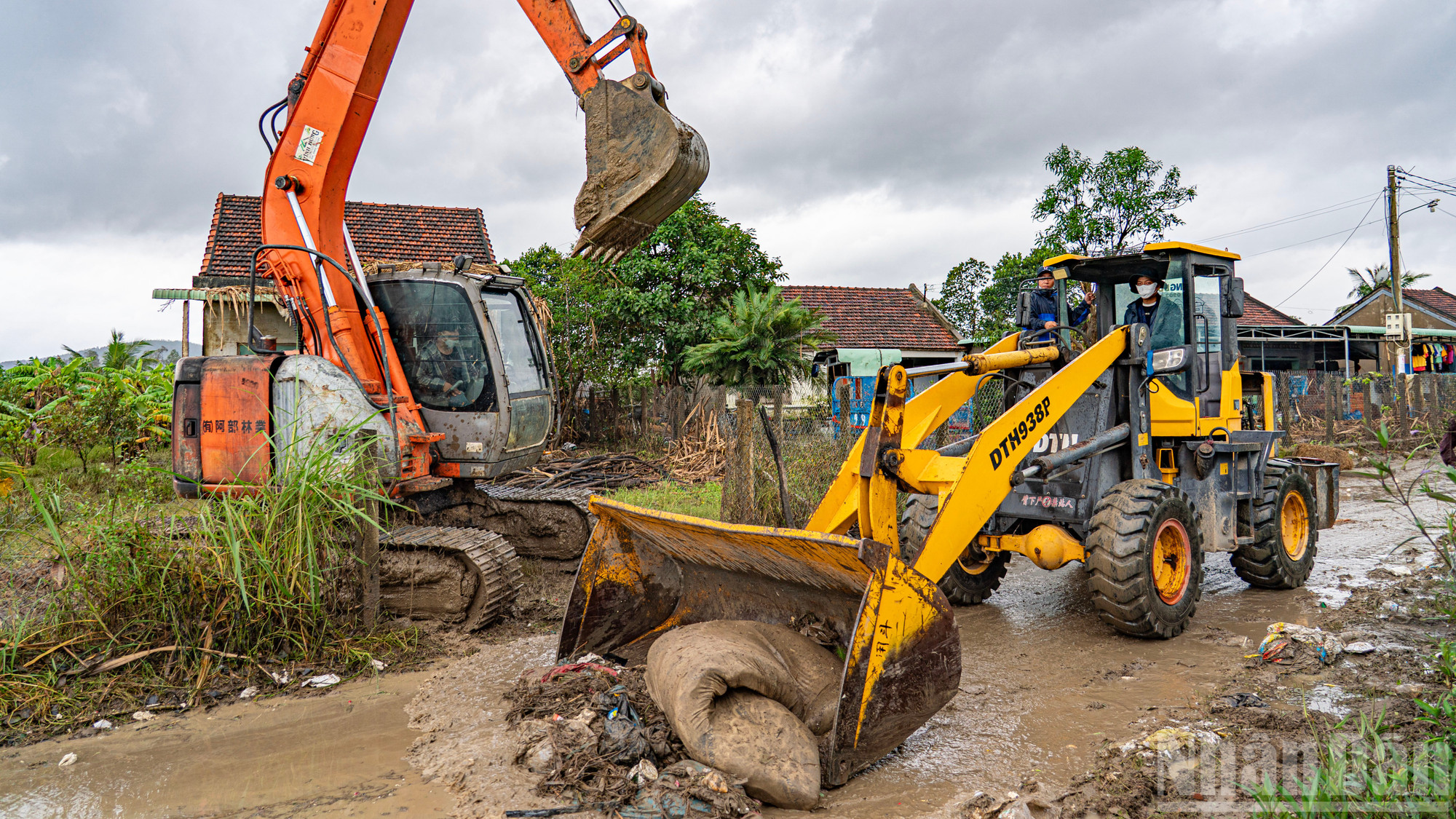 Những xe múc và trang thiết bị hạng nặng được vận hành ngày đêm để dọn dẹp đường làng, ngõ xóm - tuyến huyết mạch để tái ổn định hoạt động lao động - sản xuất.
