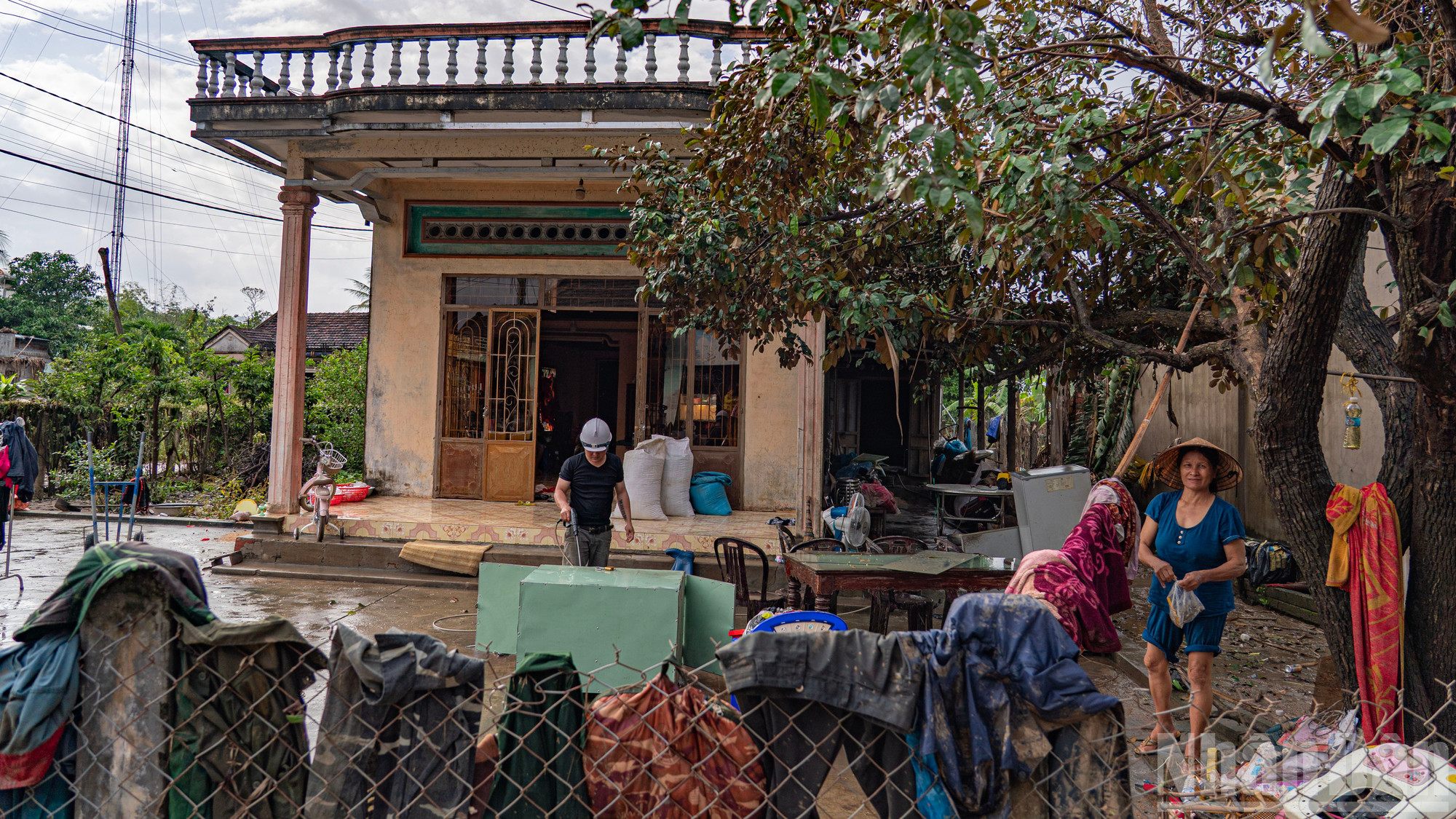 Điện và nước sạch của người dân hiện vẫn chưa được phục hồi, nhiều hộ gia đình buộc phải hứng nước mưa để sinh hoạt.