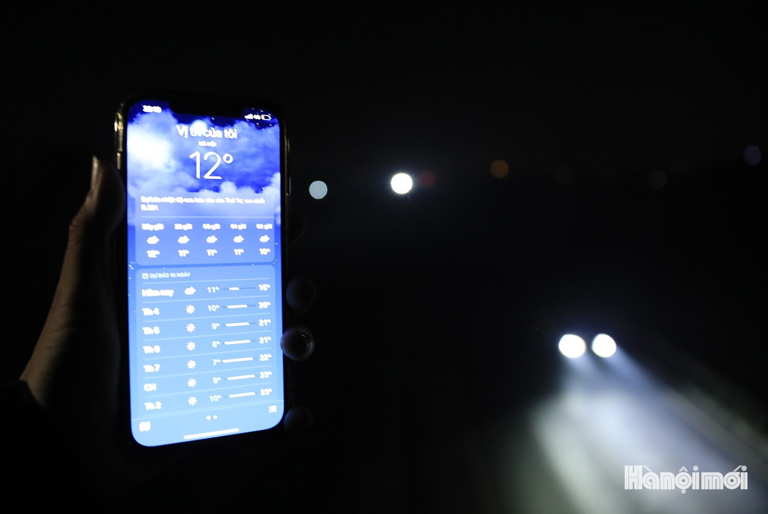 Gần 23h đêm 6-1, nhiệt độ ngoài trời ở Thủ đô Hà Nội khoảng 12 độ C. Ảnh: Quang Thái