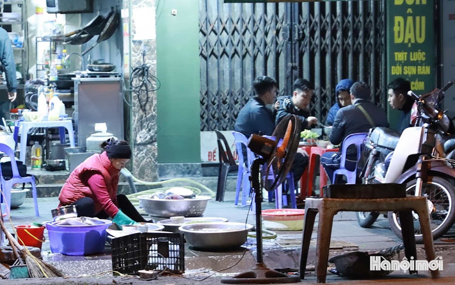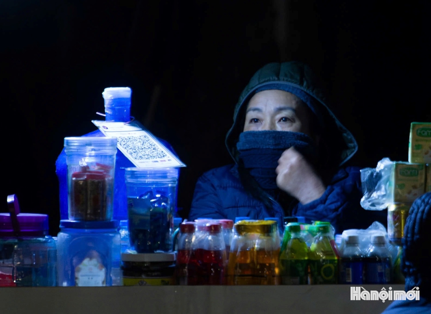 Cái rét khiến cuộc sống mưu sinh của nhiều người vất vả hơn. Anh Nguyễn Mạnh Tuấn (bán hàng ăn vặt) cho hay: “Chúng tôi bán từ 17h đến 1, 2 giờ sáng hôm sau. Trời rét này tuy vất vả hơn nhưng chúng tôi lại bán được nhiều hàng hơn”. Ảnh: Quang Thái