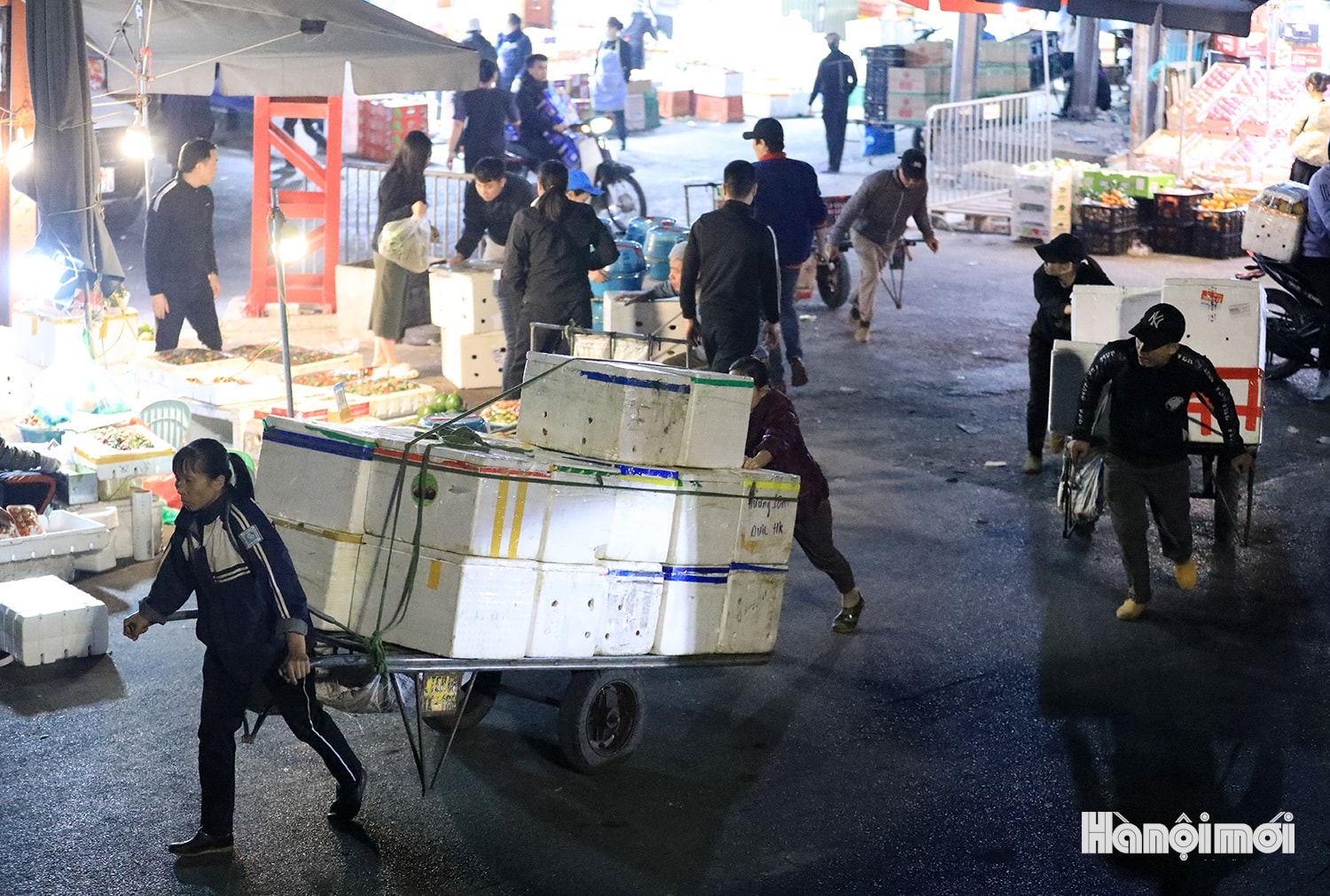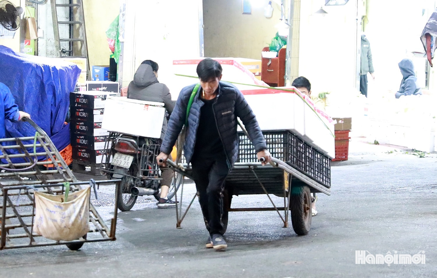 Tại chợ đầu mối Long Biên (phường Hồng Hà), cái rét dường như không ảnh hưởng đến nhịp lao động ở nơi đây. Ảnh: Quang Thái