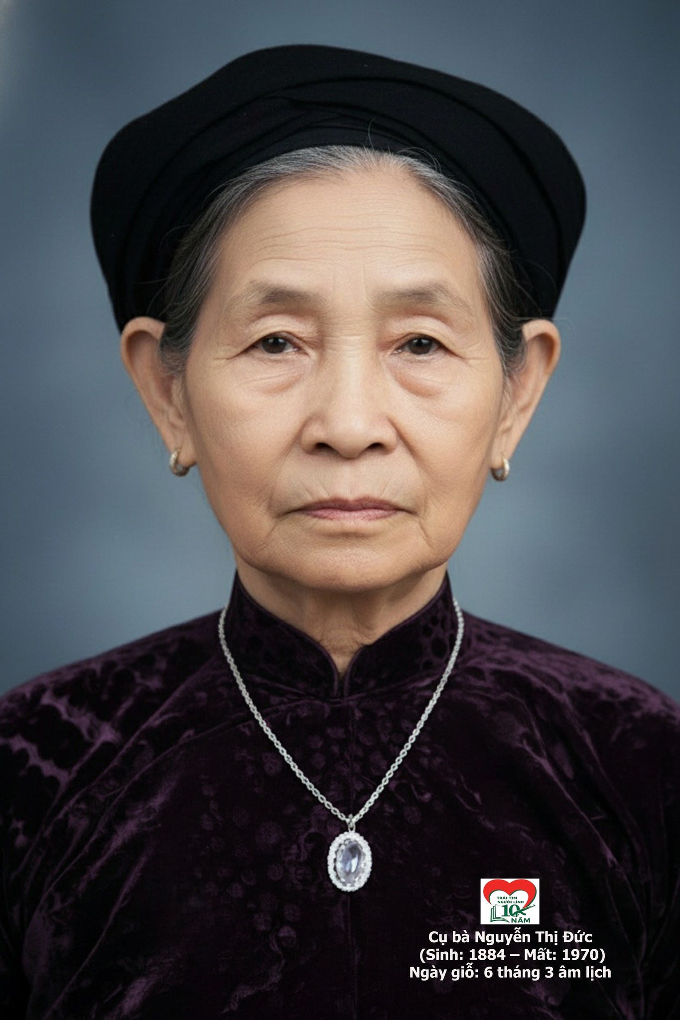 Di ảnh cụ bà Nguyễn Thị Đức (1884 – 1970, ngày giỗ: 6 tháng 3 âm lịch hằng năm). Cụ có chồng là nghĩa binh tham gia khởi nghĩa Yên Thế; con trai là đội viên Du kích Bắc Sơn, lão thành Cách mạng - một trong 4 đảng viên đầu tiên của vùng Yên Thế, tỉnh Bắc Ninh - được kết nạp vào Đảng Cộng sản Đông Dương trước 1945. (Tư liệu đen trắng, do TTNL chuyển màu).