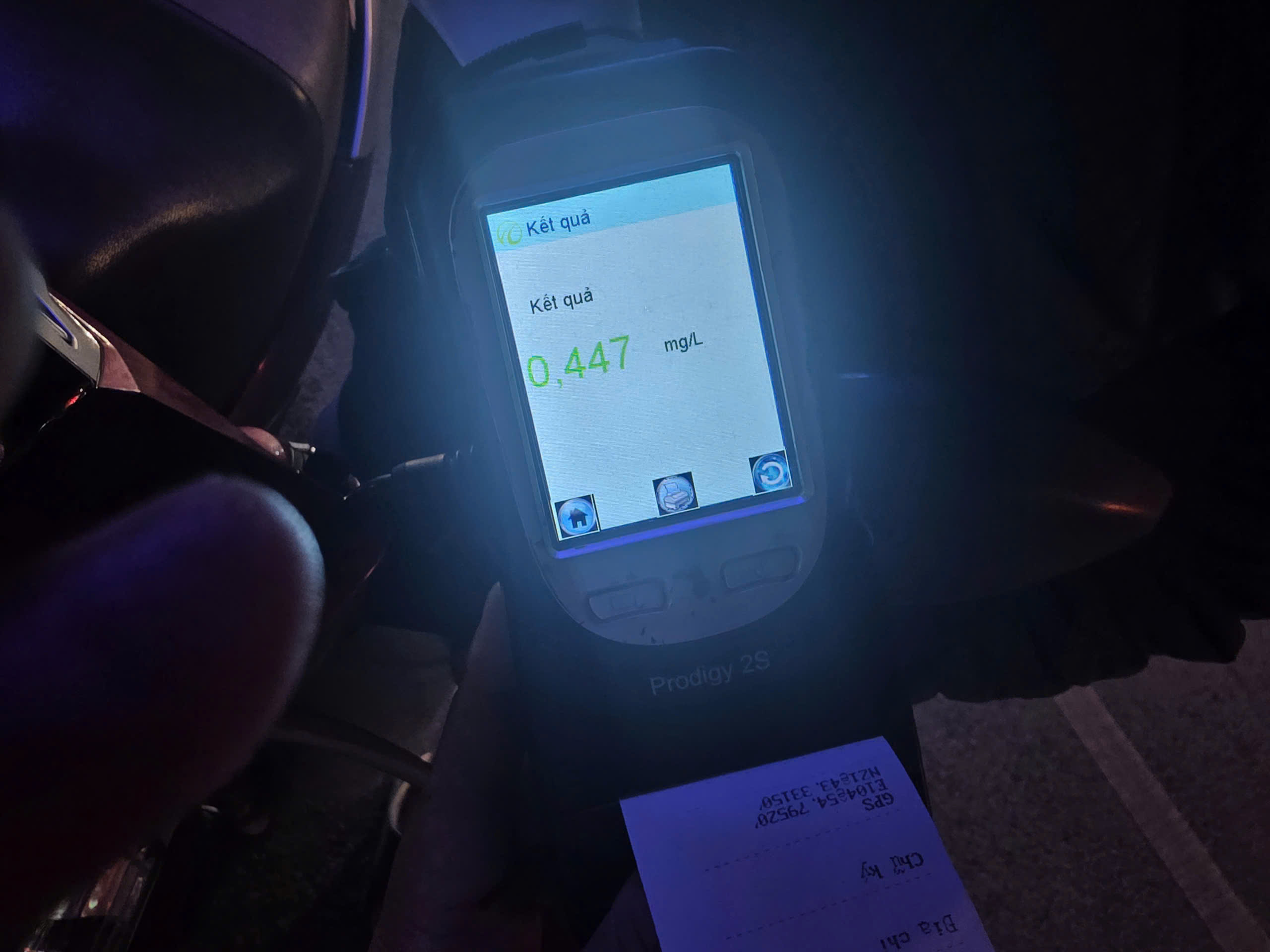 Đến 20h50, lực lượng chức năng tiếp tục kiểm tra, phát hiện anh Nguyễn Tuấn D (SN 1981), trú phường Văn Phú, tỉnh Lào Cai, điều khiển xe mô tô BKS 21B2-154.xx vi phạm nồng độ cồn ở mức 0,447 mg/lít khí thở - mức vi phạm cao nhất.