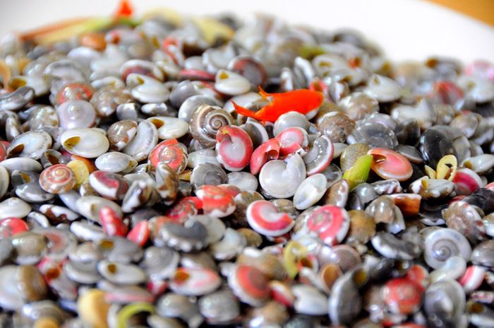 Ốc lể không phải là món để ăn vội. Đó là món của sự quây quần. Một nồi ốc đặt giữa sân, giữa hiên nhà là đủ để gọi về cả xóm. Mấy bà, mấy chị, mấy đứa trẻ túm tụm lại, người cầm gai bưởi, người chén nước mắm ớt, vừa lể ốc vừa trò chuyện. Chuyện mùa màng, chuyện con cái, chuyện ở đâu đó tận cuối xóm... cứ thế rôm rả lan ra theo từng tiếng cười. Cái ngon của ốc lể có lẽ không nằm ở vị, mà nằm ở chính những phút giây sum vầy ấy. Muốn có một nồi ốc ngon cũng lắm công phu. Ốc cào về phải ngâm với nước vo gạo cho nhả hết cát. Người ta chờ, kiên nhẫn như chờ một mùa quả chín. Sau đó là công đoạn chà rửa, làm sao cho lớp vỏ ánh lên sắc hồng nhạt, sạch sẽ và tươi mới. Những con ốc nhỏ xíu, tưởng chừng chẳng đáng gì lại được nâng niu như một thứ quà của biển.