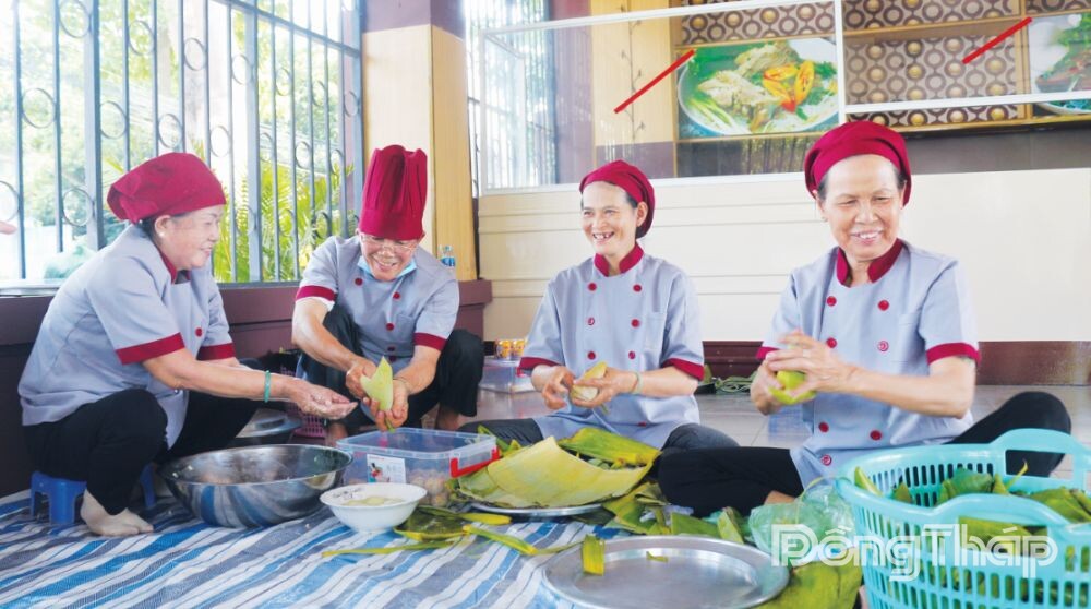 Khách tham quan đến có thể thưởng thức và tham gia trải nghiệm gói bánh.