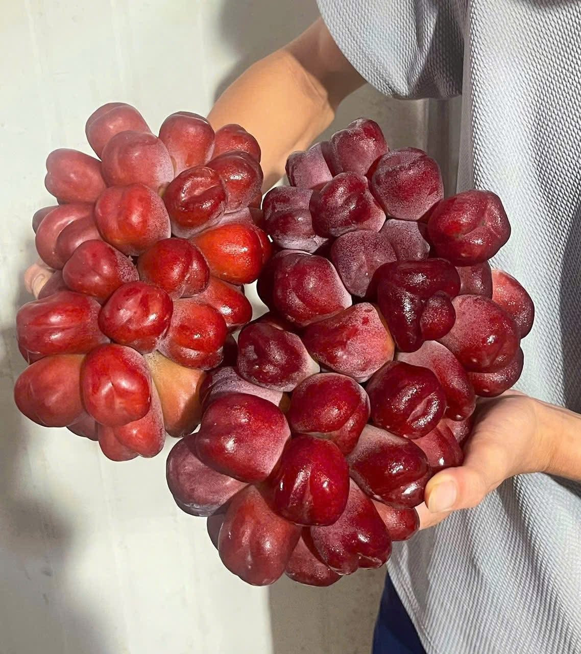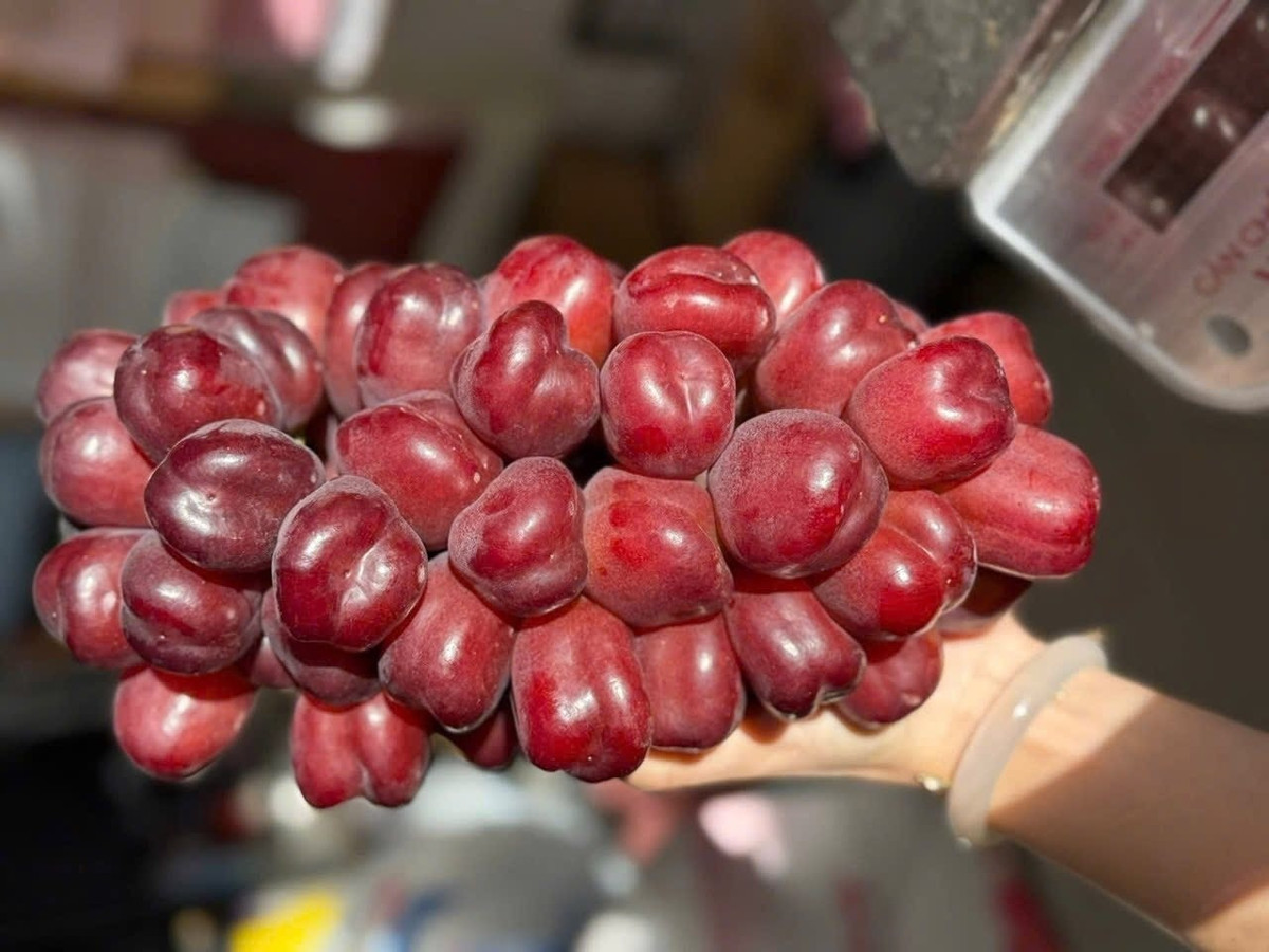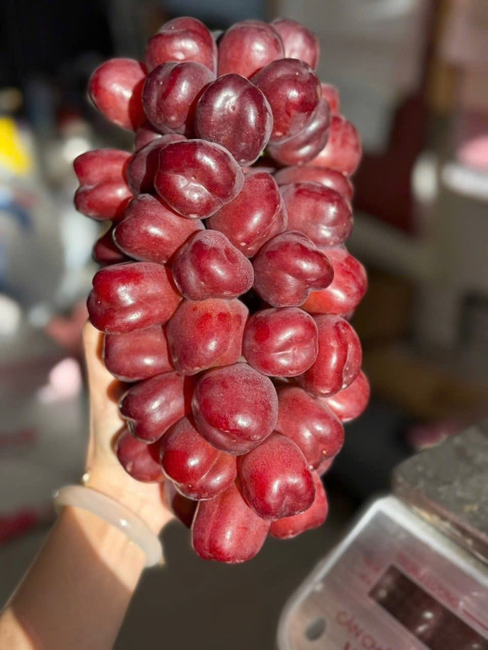 Theo các tiểu thương, nho đỏ trái tim có nguồn gốc từ Nhật Bản, sau đó du nhập về Trung Quốc trồng với diện tích lớn. Ảnh: FB Trần Thị Huyền Trang