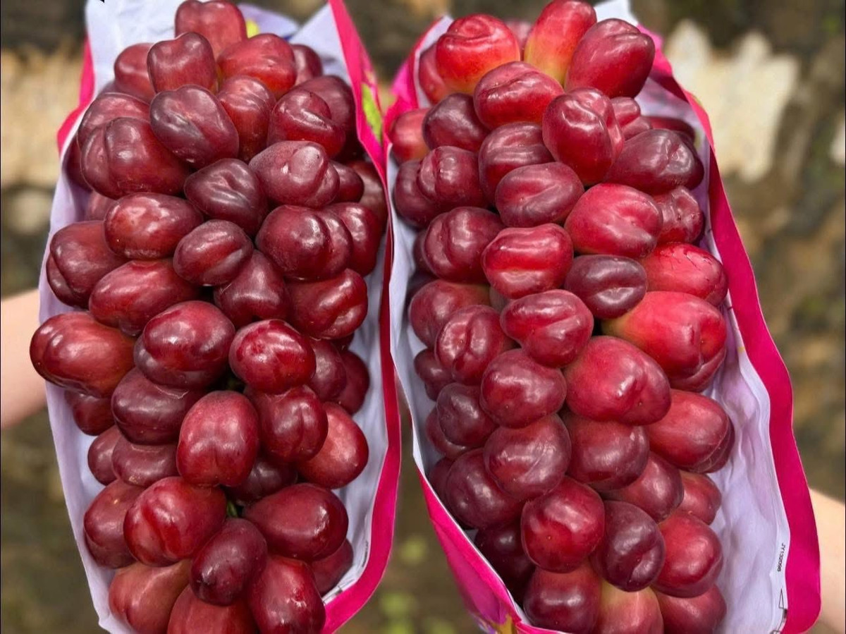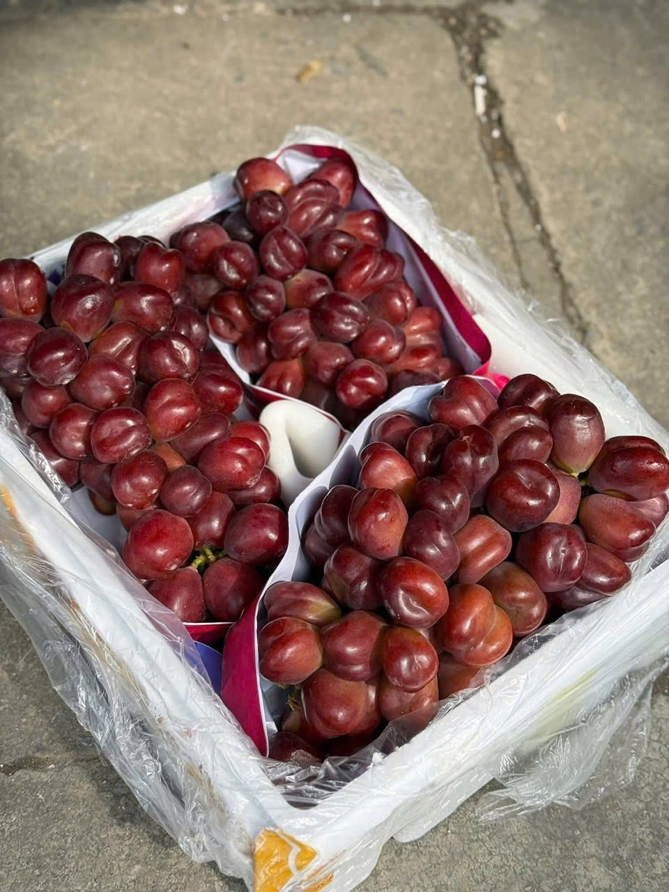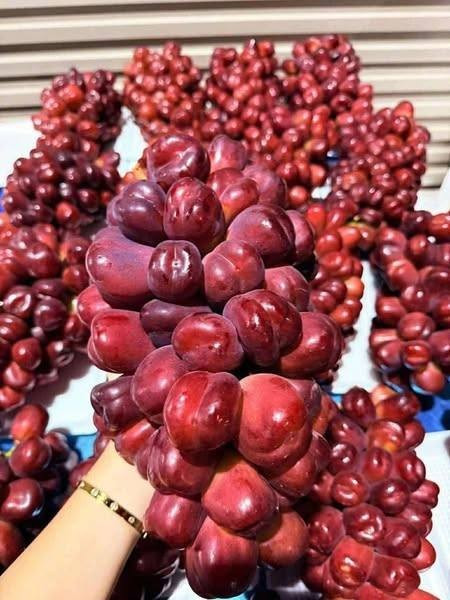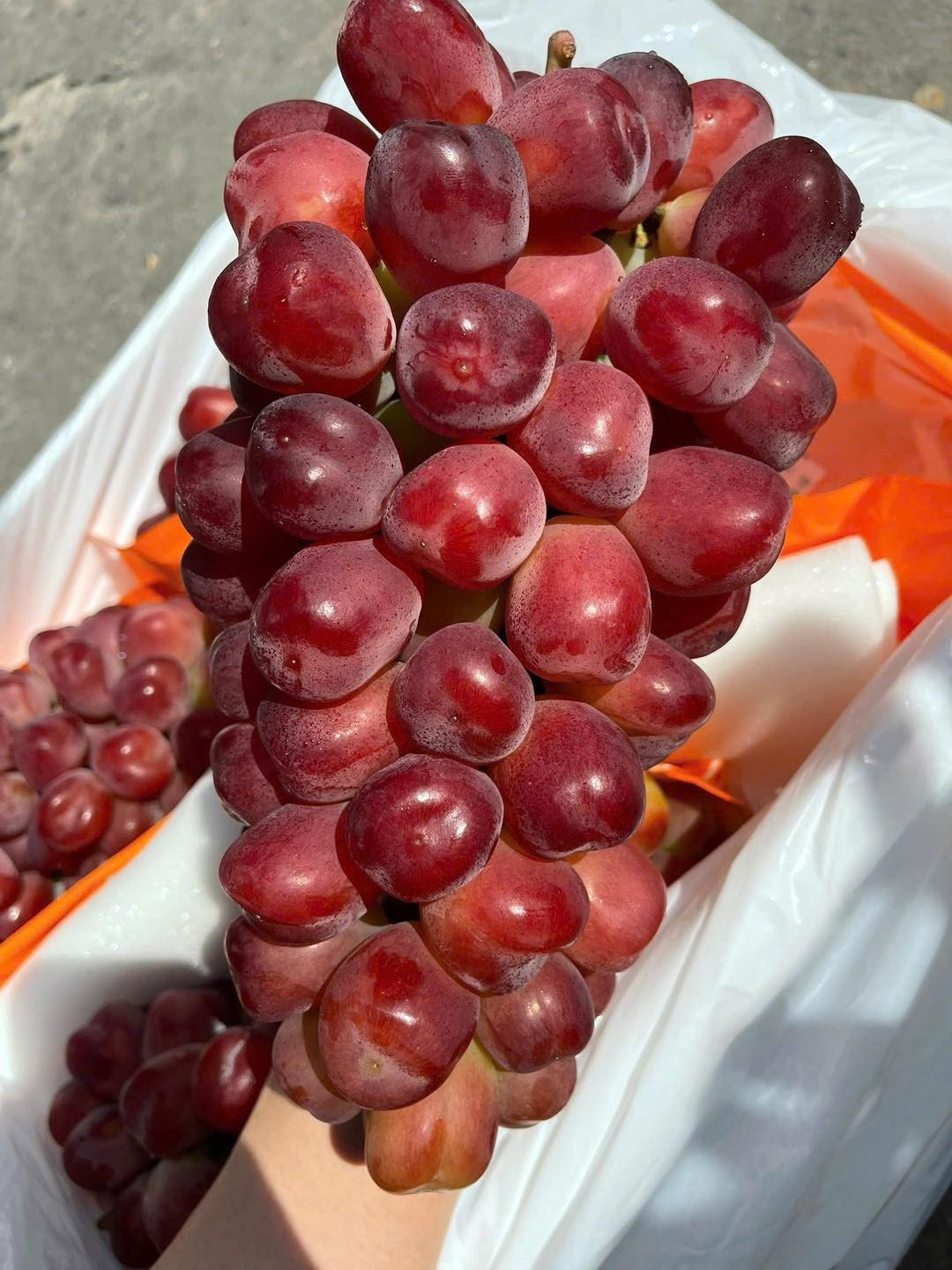 Theo các tiểu thương, nho đỏ trái tim có nguồn gốc từ Nhật Bản, sau đó du nhập về Trung Quốc trồng với diện tích lớn. Ảnh: FB Trần Thị Huyền Trang