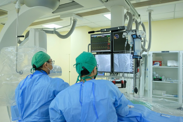 Ngay lập tức, ê-kíp hội chẩn khẩn và đưa bệnh nhân đến phòng chụp mạch máu DSA – hệ thống chuyên dụng trong can thiệp tim mạch. Kết quả cho thấy động mạch vành phải (RCA) bị tắc hoàn toàn. “Đây là tình huống cực kỳ nguy hiểm, bởi động mạch vành là “đường ống” dẫn máu nuôi trái tim. Khi dòng máu bị ngắt, tim sẽ ngừng hoạt động bất cứ lúc nào”, bác sĩ Mót nói.