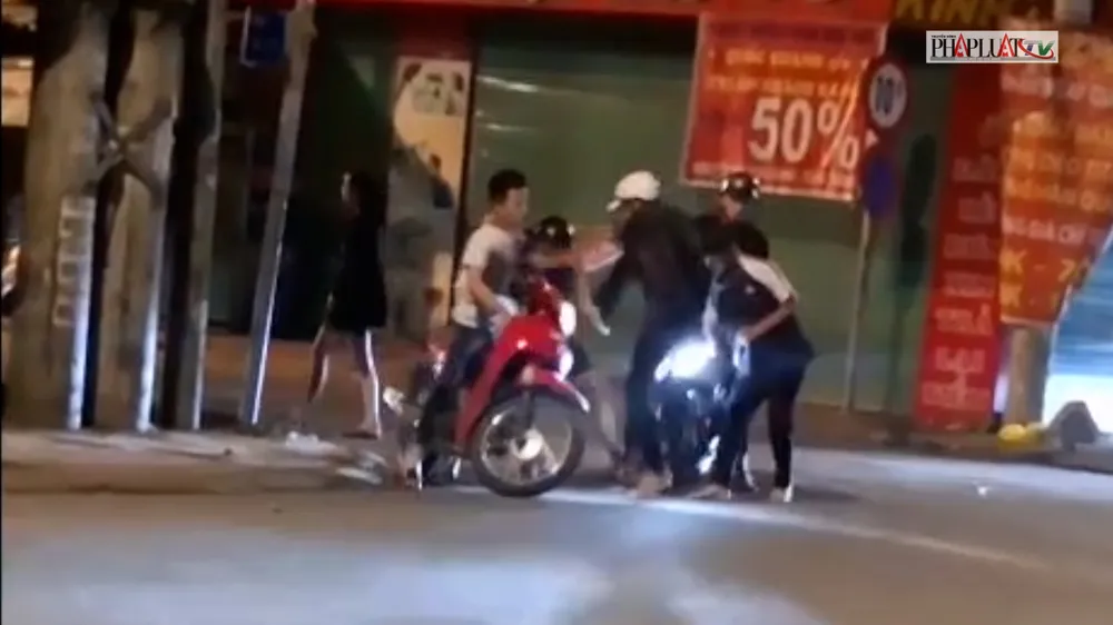 Nhân chứng cho biết thời điểm trên đường vắng, nhóm người rất đông, gồm cả nam và nữ chạy xe máy thành nhiều tốp. Một số đứng ngoài, số khác lao vào đánh nam thanh niên và người phụ nữ đi cùng.