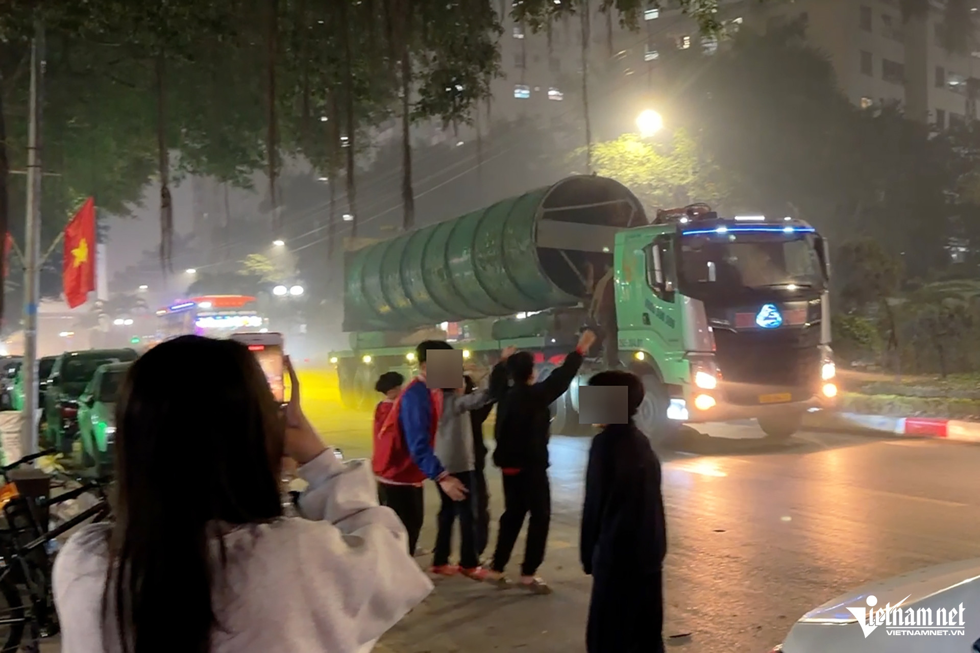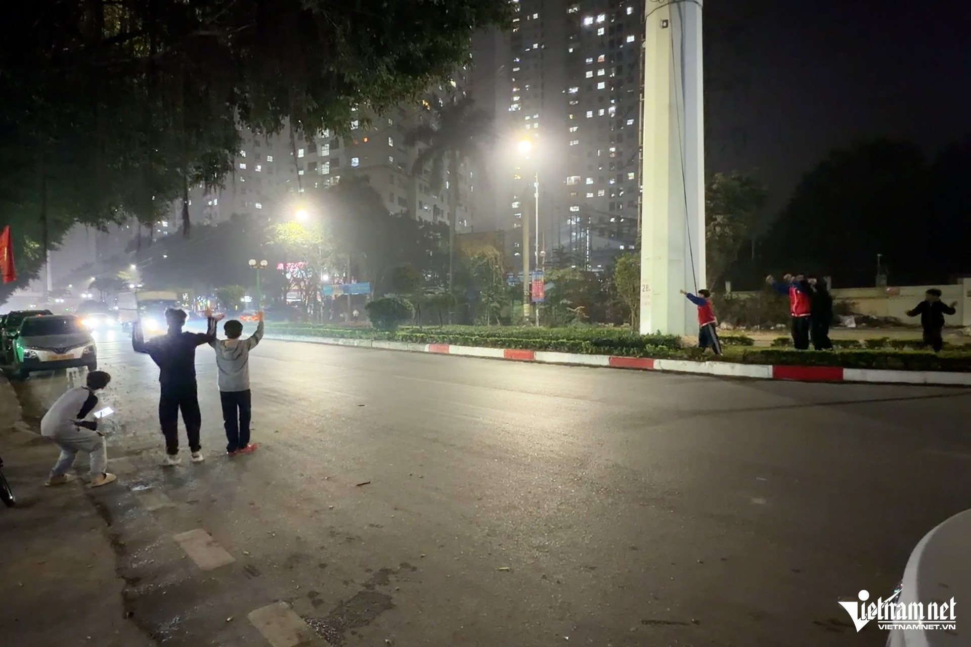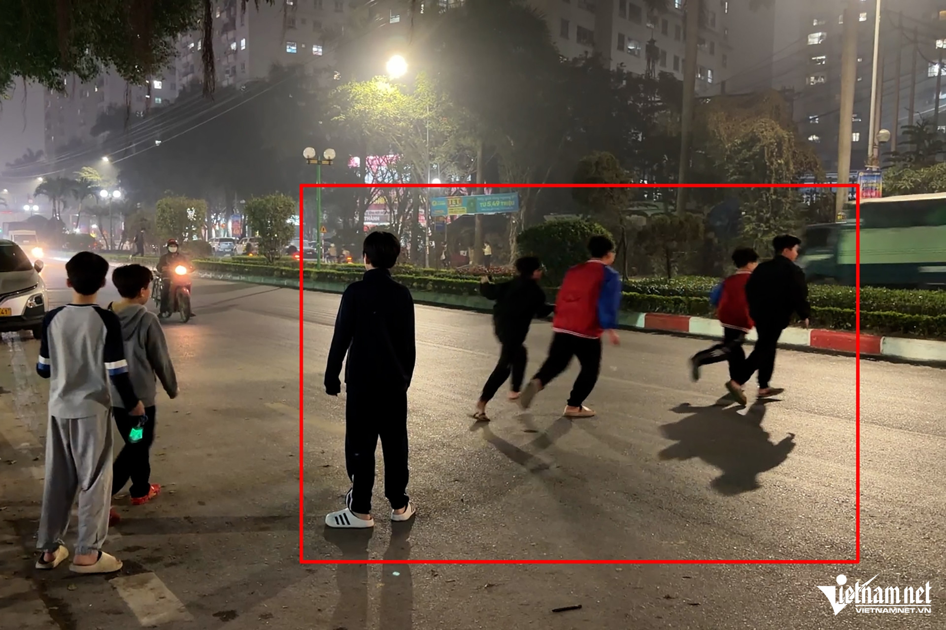 Khoảng 21h20 ngày 5/2, trên đường Phúc La (đoạn trước chung cư CT4C Xa La, phường Hà Đông, Hà Nội), một nhóm trẻ em trong độ tuổi từ 11 đến 12 đã nhảy múa theo tiếng còi ô tô tải.
