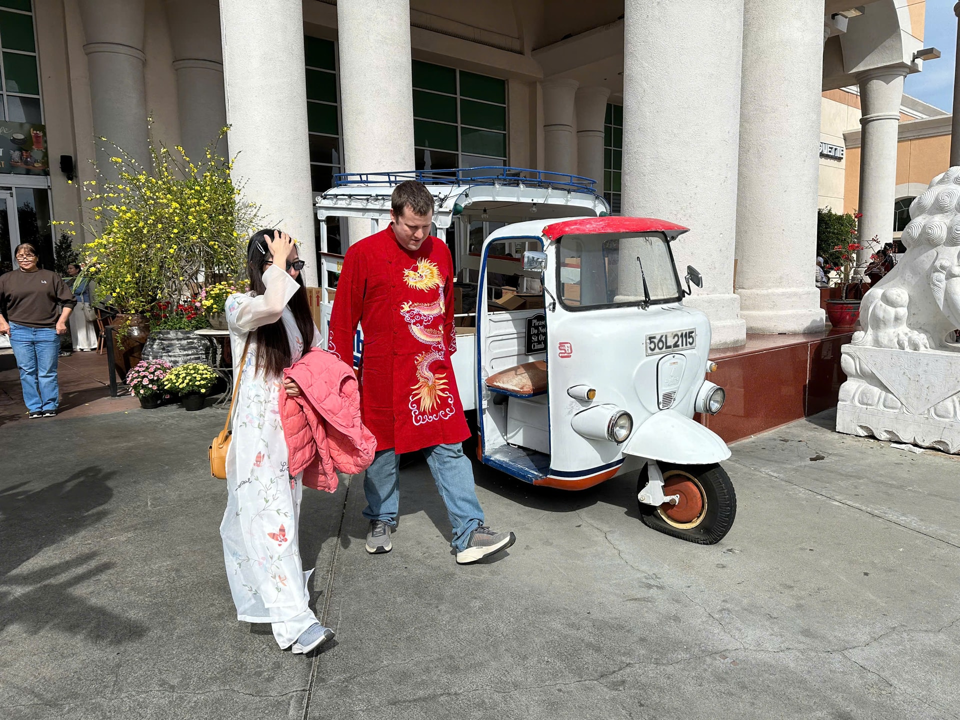Tôi đứng đó nhìn thật lâu để cảm nhận. Dù cộng đồng người Việt ở xa quê hương, Tết không phải lễ hội chính của quốc gia họ đang sống, nhưng Tết vẫn luôn là khoảnh khắc thiêng liêng đối với bà con xa xứ. Người ta đến chợ Tết với một tâm trạng rất khác. Từ chỗ cô bán đào, nhìn chếch sang trái là hình ảnh chiếc xe lam đặc trưng của Việt Nam. Ở đó, một cặp đôi - chồng người da trắng, vợ người Việt - mặc áo dài tạo dáng chụp hình, rồi nắm tay nhau vui vẻ bước đi.