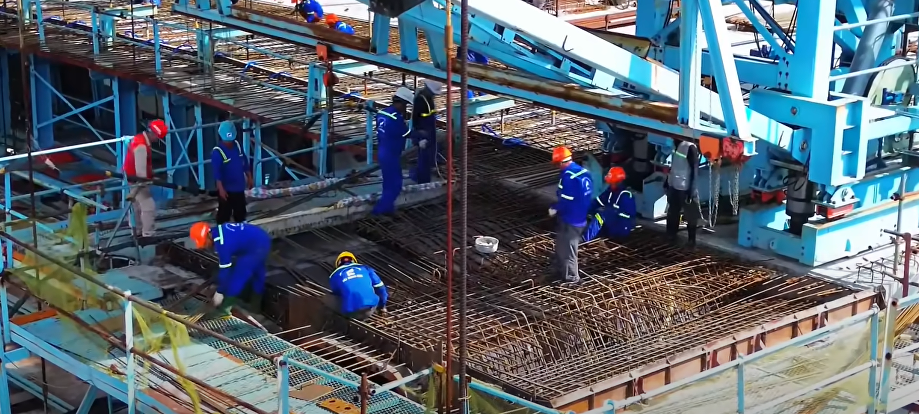 Có khoảng 200 công nhân làm việc liên tục trên công trường. Ảnh: Nhóm thợ cầu Việt Nam